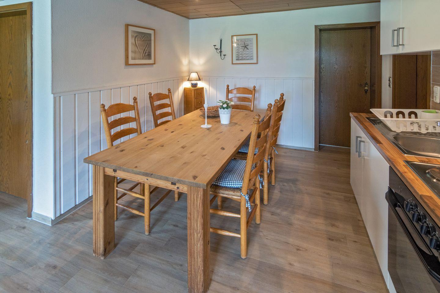 Die Nichtraucher-Ferienwohnung befindet sich in einem Zweifamilienhaus und bietet auf ca. 60 m² Platz für 4 Personen. Eine Terrasse mit großzügigem Garten, ein PKW-Stellplatz und ein Abstellraum für Fahrräder gehört zur Wohnung. Ein Hund ist hier willkommen.