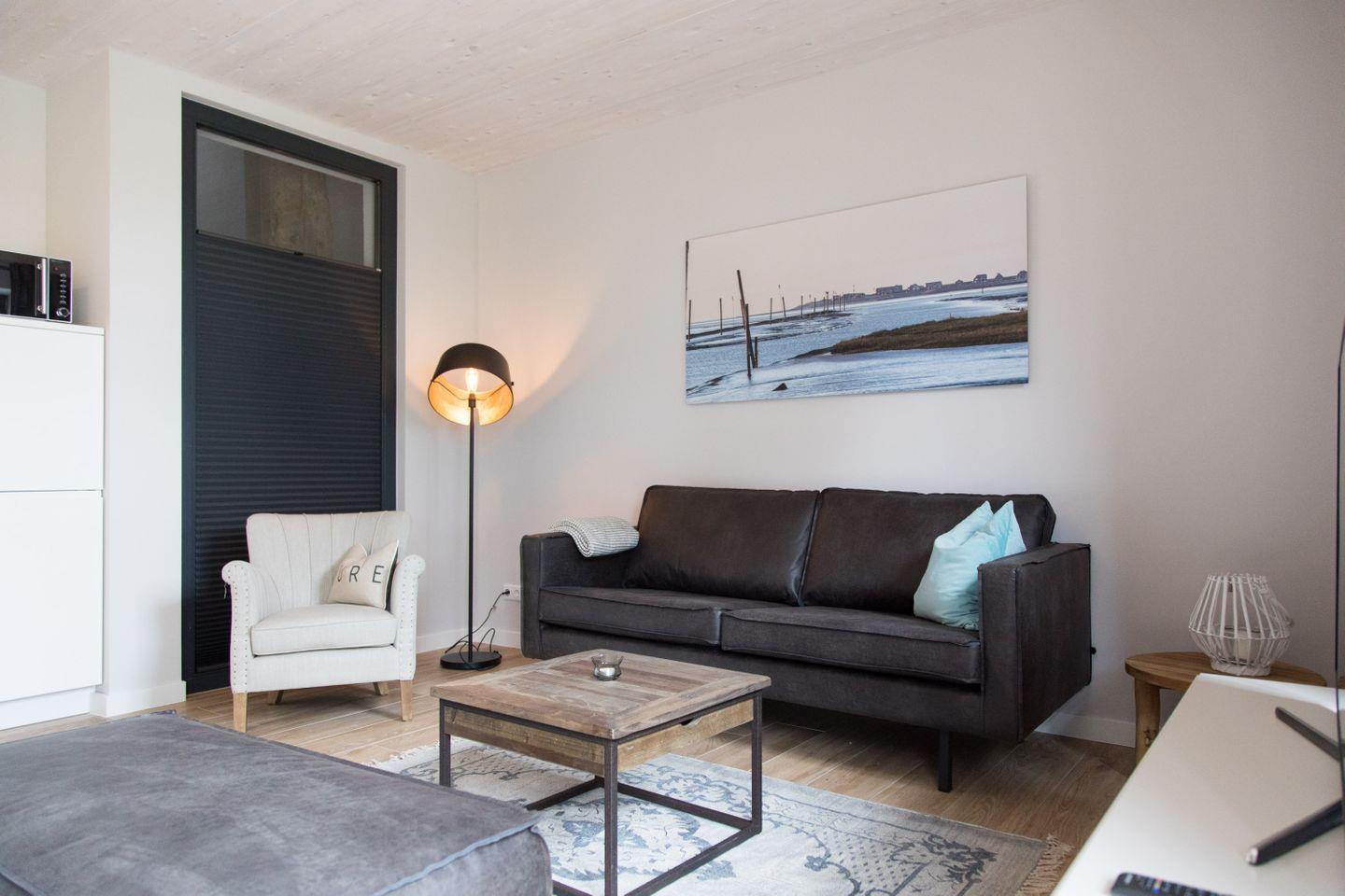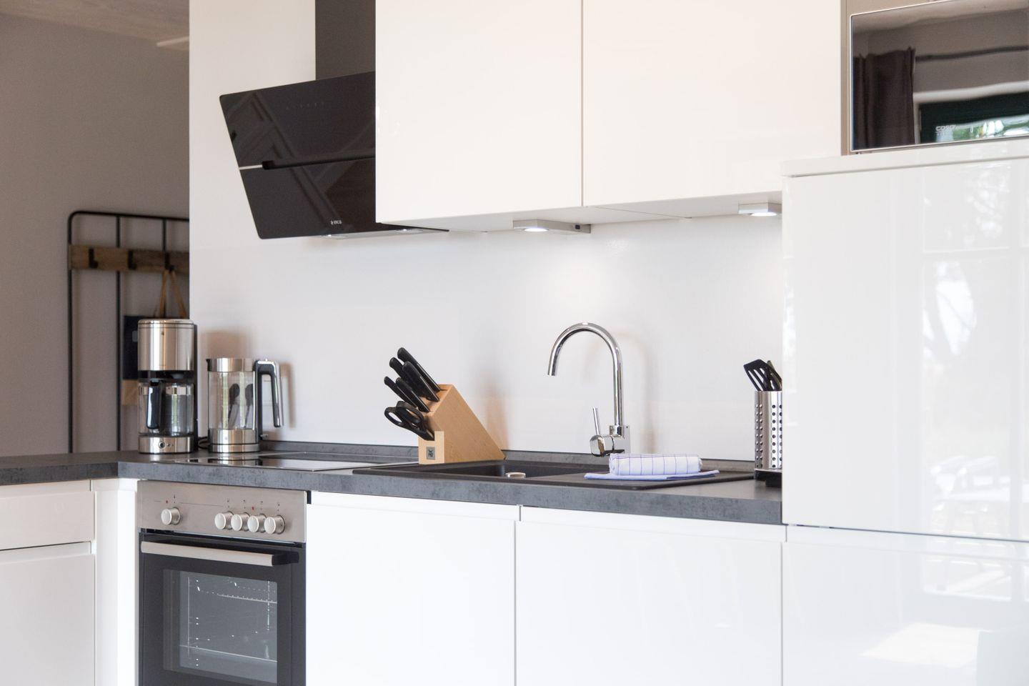 Die offene Wohnküche ist ein echtes Highlight. Hier erwartet Sie eine voll ausgestattete Küche mit modernen Annehmlichkeiten wie einem Ceranherd, einer Mikrowelle, einem Kühlschrank mit Gefrierfach und sogar einer Espressomaschine – ideal für einen perfekten Start in den Tag. Der Essbereich und die Sofaecke im Wohnzimmer laden zum gemeinsamen Verweilen und geselligen Beisammensein ein. Genießen Sie beim Kochen und Essen die moderne Einrichtung und die behagliche Atmosphäre, die der Gulfhof Dreybült 2 Aiko ausstrahlt.