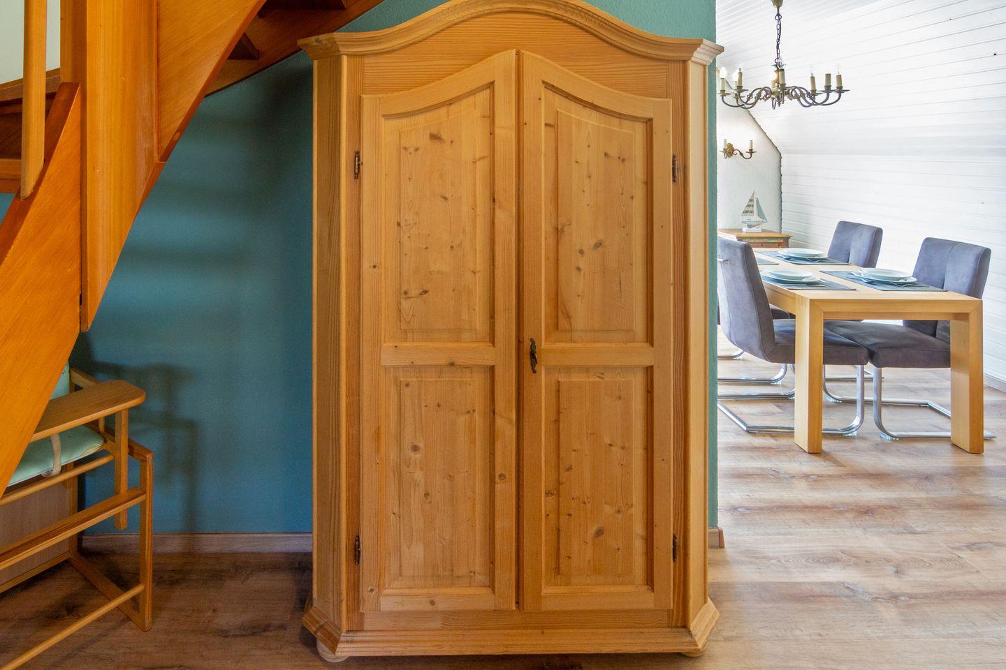 Der Wohnbereich lädt mit Sofa, OLED-TV 48¨ mit Satellitenanschluss, Radio sowie CD- und DVD-/Blu-ray-Player zu gemütlichen Abenden ein. Bücher und Spiele sorgen für Unterhaltung, WLAN steht kostenfrei zur Verfügung. Praktische Ausstattungen wie Garderobe, Staubsauger, Bügeleisen, Wäscheständer und Rauchmelder sind ebenfalls vorhanden.
