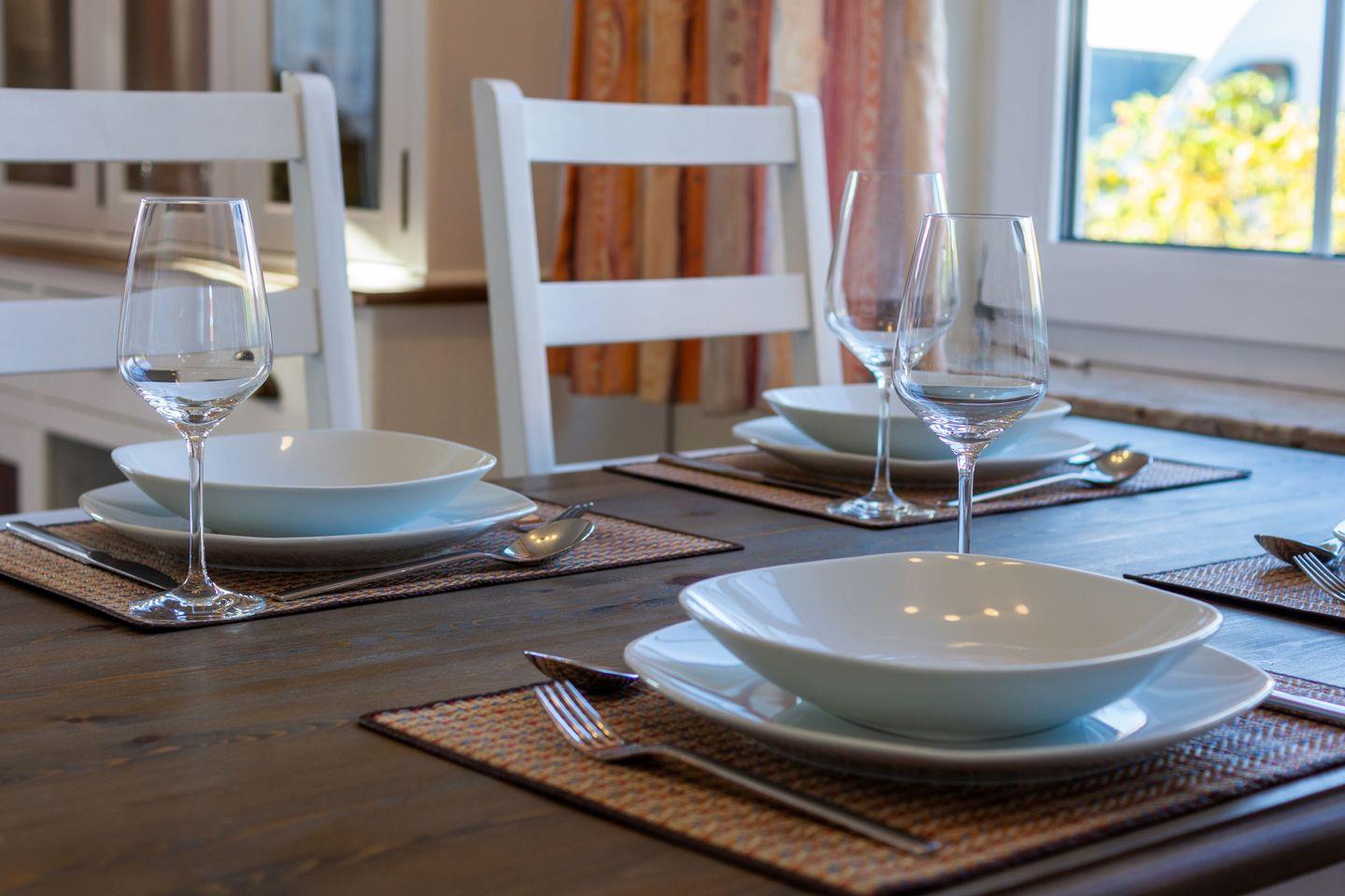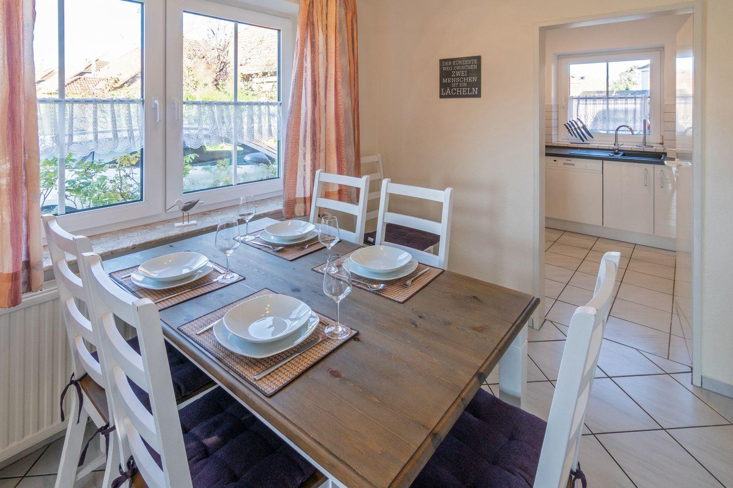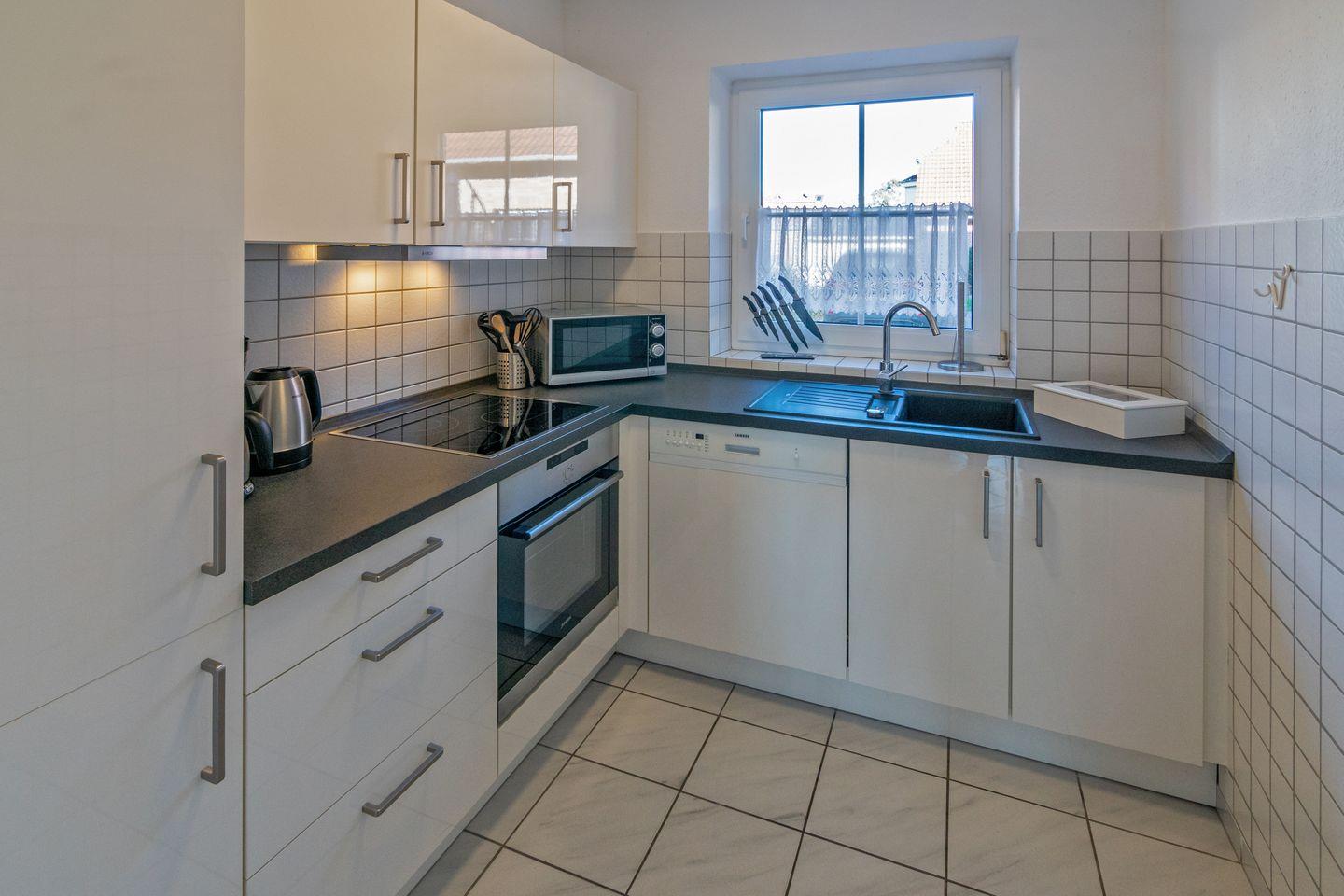 Die separate Küche ist komplett ausgestattet mit Ceran-Herd, Backofen, Mikrowelle, Kühlschrank, Gefrierschrank, Spülmaschine, Kaffeemaschine, Wasserkocher, Toaster sowie Geschirr und Küchenutensilien.
