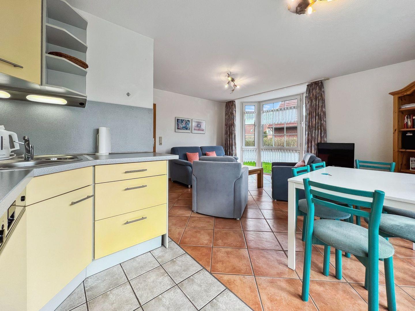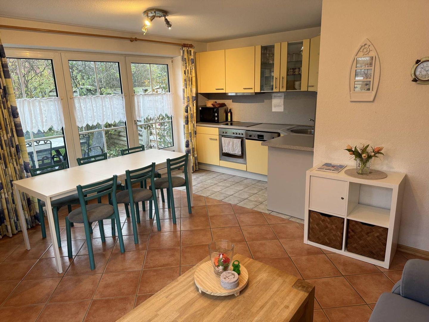 Zur Ausstattung des Hauses gehören ein PKW-Stellplatz sowie eine einladende Terrasse mit Garten, die sich hervorragend für entspannte Stunden im Freien eignet. Im Erdgeschoss erwartet Sie ein großzügiger Wohn- und Essbereich, der mit einer voll ausgestatteten Küche aufwartet. Hier finden Sie alles, was Sie benötigen, um köstliche Mahlzeiten zuzubereiten. Zudem gibt es ein Schlafzimmer mit zwei Einzelbetten und ein modernes Duschbad mit WC.