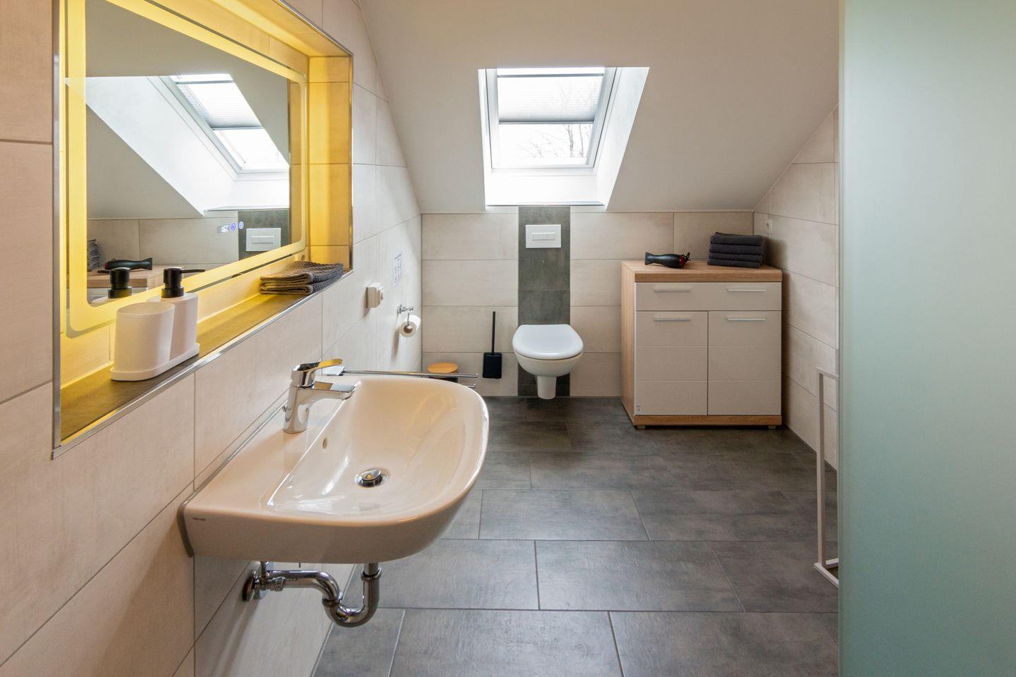 Das moderne Bad ist mit Dusche, Haartrockner und Stauraum ausgestattet. WLAN, Satelliten-TV, ein Wäscheständer, eine Garderobe und ein Staubsauger ergänzen die Ausstattung.