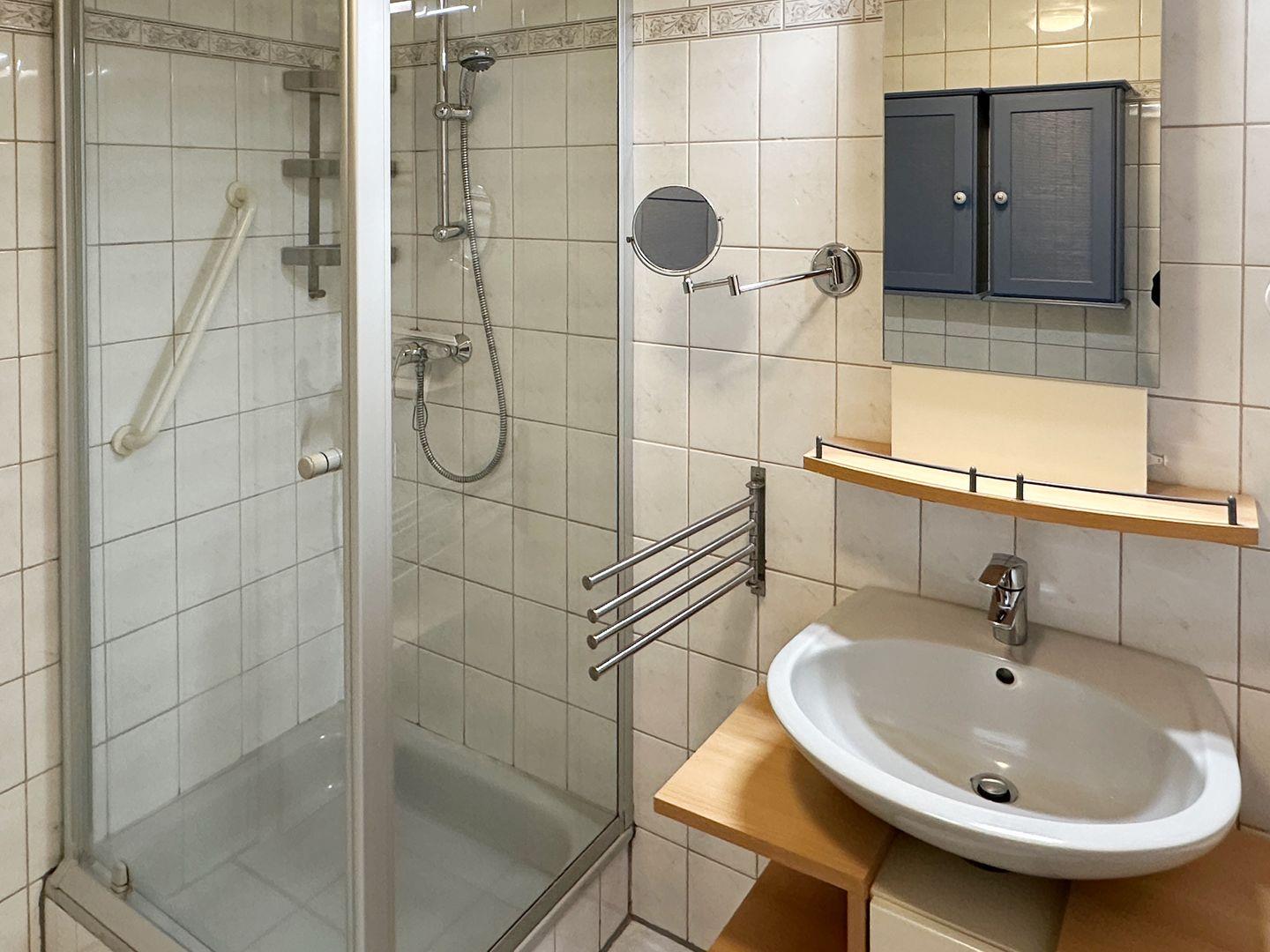 Die 40 m² große Unterkunft verfügt über ein einladendes Schlafzimmer und ein Badezimmer mit Dusche. Das offene Wohnkonzept verbindet das Wohnzimmer mit der vollausgestatteten Küche, die über einen 3-Platten-Herd, Kühlschrank, Geschirrspüler, Kaffeemaschine und alle wichtigen Küchenutensilien verfügt. Hier können Sie in aller Ruhe Ihre Mahlzeiten zubereiten und genießen. Der Essbereich mit einem schönen Esstisch und die Sofaecke laden zu gemütlichen Abenden ein.
