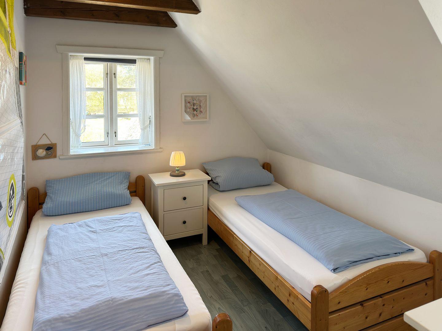 Die beiden Schlafzimmer sind hell und freundlich gestaltet. Für Familien mit kleinen Kindern ist die Ausstattung besonders familienfreundlich, da auf Anfrage ein Hochstuhl und ein Babybett zur Verfügung stehen. Zudem sind Haustiere bei uns herzlich willkommen, sodass auch der geliebte Vierbeiner mit in den Urlaub fahren kann. Für alle Gäste des Hauses befinden sich im Keller eine Münz-Waschmaschine, ein Münz-Trockner und ein Backofen.