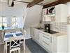 Die Ferienwohnung überzeugt durch eine offene Küchen- und Wohnbereichsgestaltung, die einladend und gemütlich wirkt. Die voll ausgestattete Küche, die mit einem Herd, einer Mikrowelle, einer Kaffeemaschine, einem Toaster und sämtlichen notwendigen Küchenutensilien ausgestattet ist, lädt dazu ein, kulinarische Köstlichkeiten zu zaubern. Im Essbereich finden alle Gäste bequem Platz, um gemeinsam zu speisen und den Tag Revue passieren zu lassen. Das Wohnzimmer ist der ideale Ort zum Entspannen, wo ein Sofa und ein Fernseher für gemütliche Abende sorgen.
