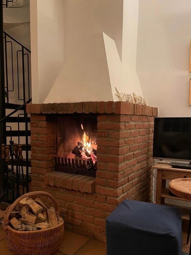 Die offene Küchenzeile ist perfekt zum Zubereiten von Mahlzeiten und bietet alle notwendigen Geräte, einschließlich eines Geschirrspülers, Elektro- und Gasherd, Backofen, Kühlschrank, Kaffeemaschine und Toaster. Ein gemütlicher Kamin oder Kachelofen sorgt für eine angenehme Atmosphäre an kühleren Abenden.