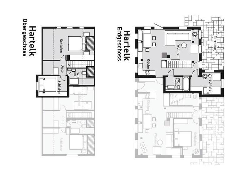 Beide Wohnungen verfügen über einen eigenen Eingang. Sie können unabhängig voneinander genutzt werden.