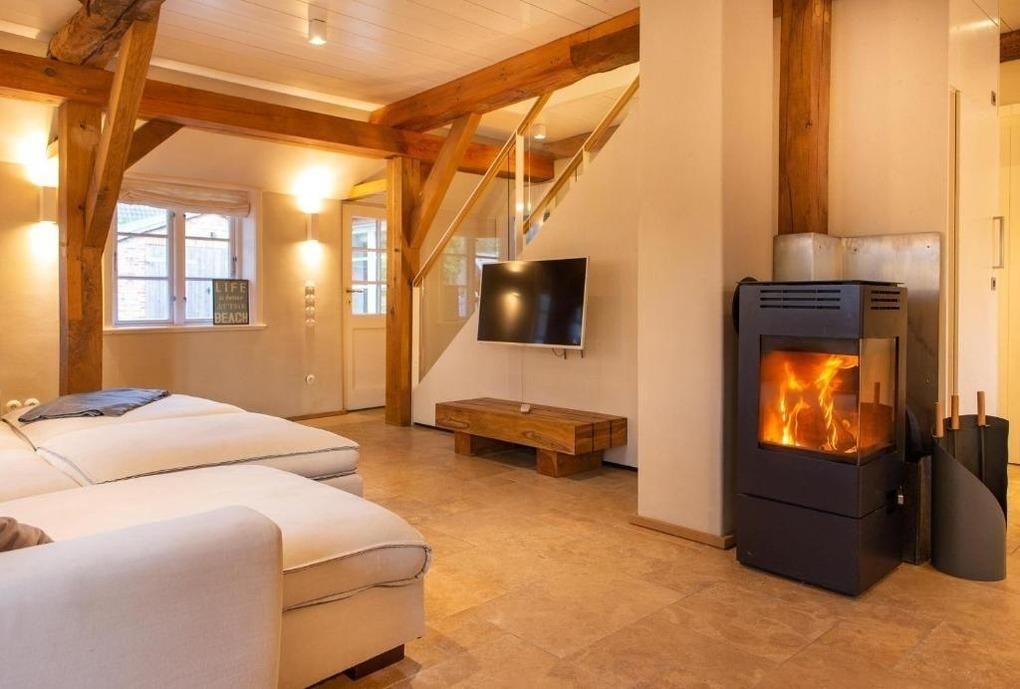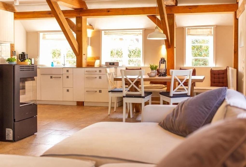 Die Ferienwohnung überzeugt durch ihre großzügige Raumaufteilung und moderne Ausstattung. Sie verfügt über drei Schlafzimmer, darunter zwei mit komfortablen Doppelbetten und eines mit einem Einzelbett, ideal für Familien oder Gruppen. Die offene Küche ist mit sämtlichen Annehmlichkeiten ausgestattet, darunter ein Geschirrspüler, Elektro-/Gasherd, Backofen, Mikrowelle, Kühlschrank, Kaffeemaschine, Toaster und eine Gefriermöglichkeit. Zwei stilvolle Badezimmer mit Duschbad und Haartrockner bieten zusätzlichen Komfort. Der Wohnbereich mit Kamin oder Kachelofen lädt zum Entspannen ein und ist mit einem Fernseher ausgestattet. Für praktische Belange stehen zudem eine Waschmaschine und ein Wäschetrockner zur Verfügung. WLAN-Internet sichert die Verbindung zur digitalen Welt. Diese Ferienwohnung verbindet Gemütlichkeit mit funktionaler Eleganz und eignet sich perfekt für unvergessliche Urlaubstage.