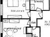 Kinderzimmer: Etagenbett 200 x 90 cm, unten Federkern, oben Schaumgummimatratze, Kleiderschrank, Tisch und zwei Stühle