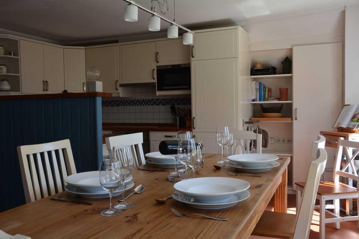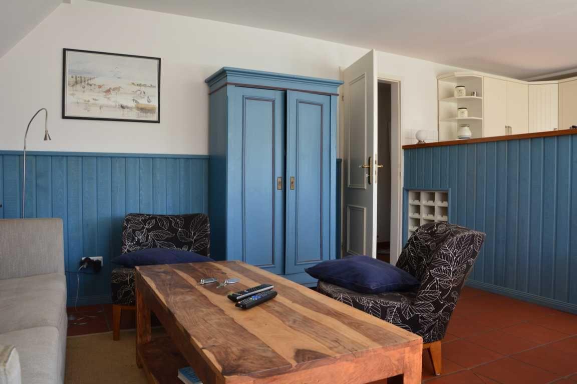 Es erwartet Sie eine großzügige, schön ausgestattete Ferienwohnung über 2 Etagen. Das große Wohnzimmer mit moderner und komplett ausgestatteter Einbauküche lässt keine Wünsche offen. Von der Waschmaschine bis zum Waffeleisen ist alles vorhanden. Die Wohnung verfügt über 2 Schlafzimmer auf unterer Ebene und ein Weiteres im OG mit Doppelbett und fantastischem Meerblick Richtung Föhr.