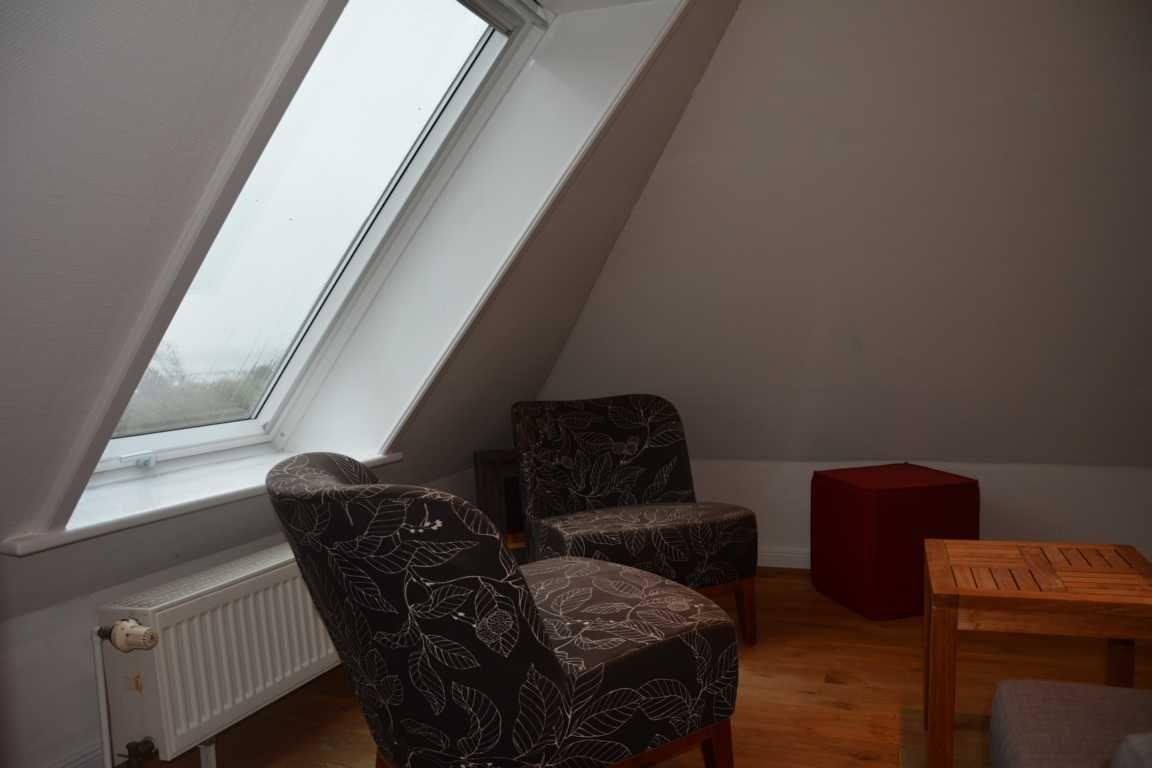 Das Lese - oder Chill-Out-Zimmer befindet sich als Highlight ebenfalls im Obergeschoss. Dort können sie ausspannen und den tollen Blick aufs Wattenmeer bis nach Föhr genießen.