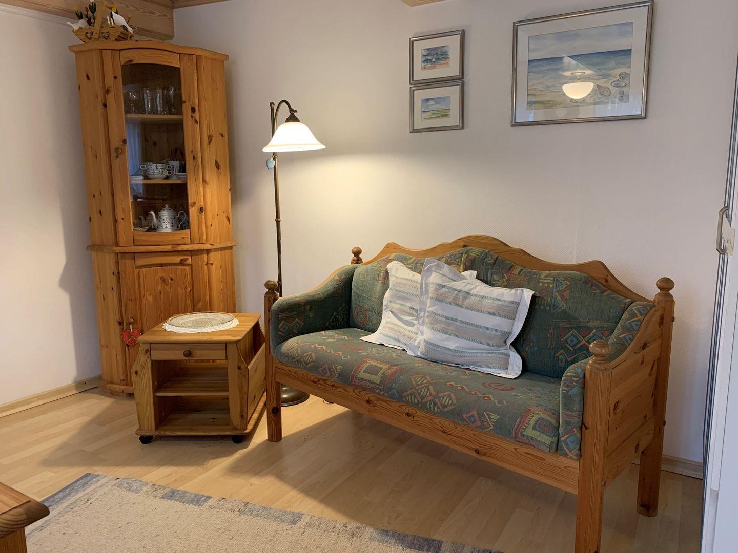 Die Gartenwohnung liegt direkt am Garten mit Terrasse. Sie hell und komfortabel ausgestattet. Das Wohnzimmer hat einen Laminatboden, eine bequemes kleines Sofa, sowie einen kleinen Eßbereich. Von der Küche kommen sie direkt in den Garten. Das helle moderne Tageslichtbad erreichen sie über den kleinen Eingangsflur. Das zweckmässig ausgestattete Schlafzimmer mit Doppelbett liegt neben dem Wohnzimmer.
