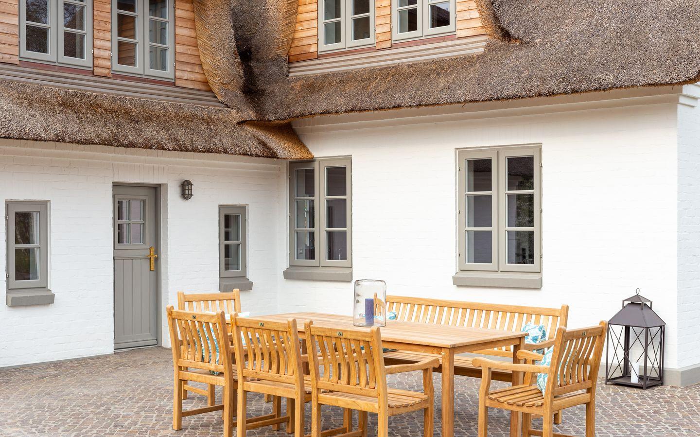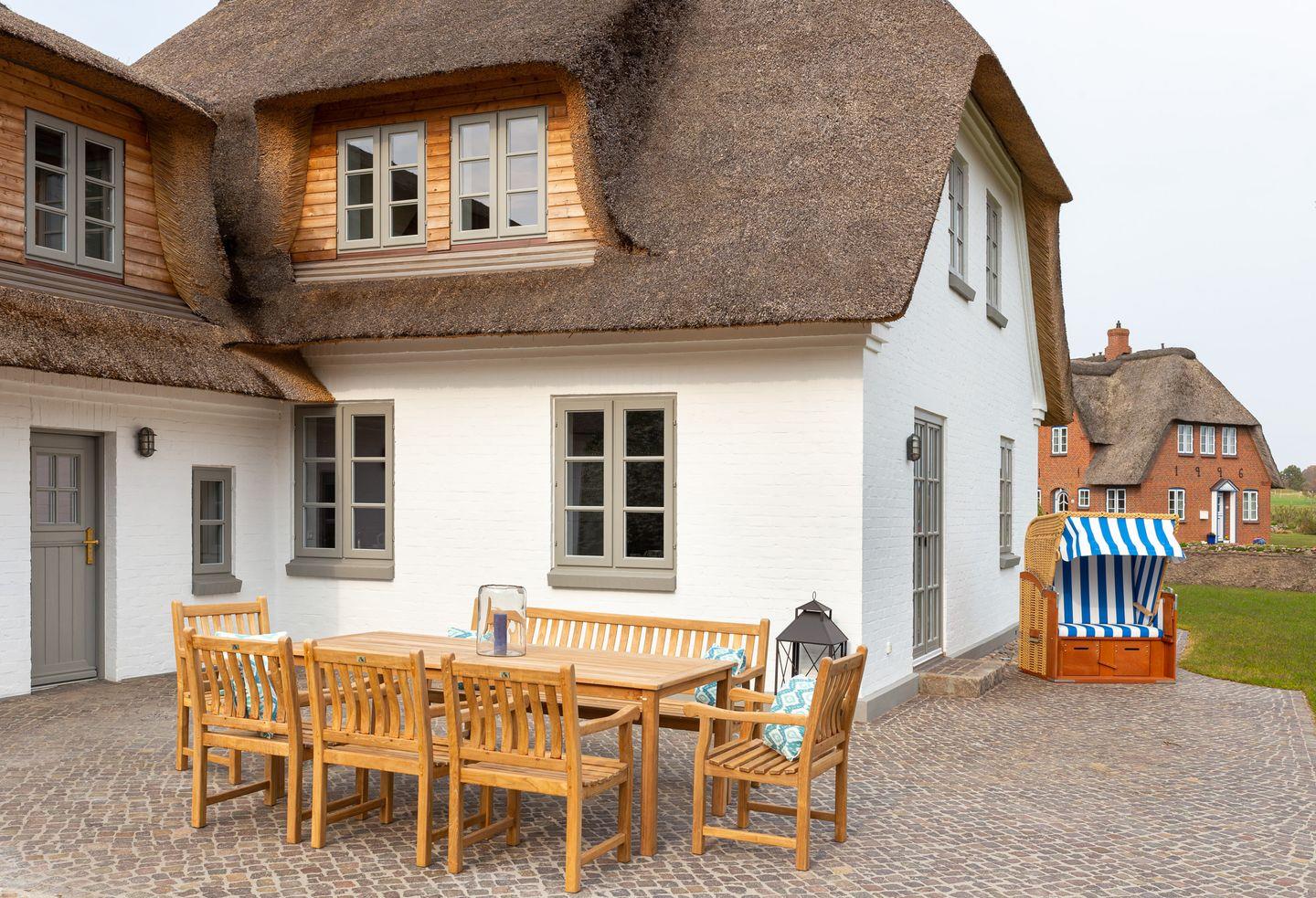 Dieses wunderschöne Reetdachhaus im Herzen Amrums bietet allen Komfort, um den Urlaub unvergesslich zu machen. Am Nebeler Strandweg liegt das Haus optimal, um von dort die Insel zu erobern. Das Haus bietet Platz für bis zu 8 Personen, die in 5 Schlafzimmern aufgeteilt werden können. Die Einrichtung besticht durch eine gelungene Kombination aus traditionellen Elementen und modernen, stilvollen Möbeln. Das Haus wird von einem großzügigen Garten mit einen schönen Terrasse umgeben.