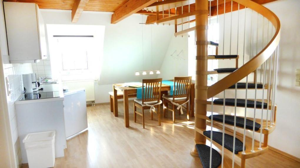 Die Wohnung verfügt über 1 Wohnraum mit WLAN, Sat-TV und offener Küchenzeile, 1 offenes Schlafzimmer im Dachgeschoss, 1 Badezimmer mit Dusche und WC. Ein PKW-Stellplatz am Haus ist vorhanden.