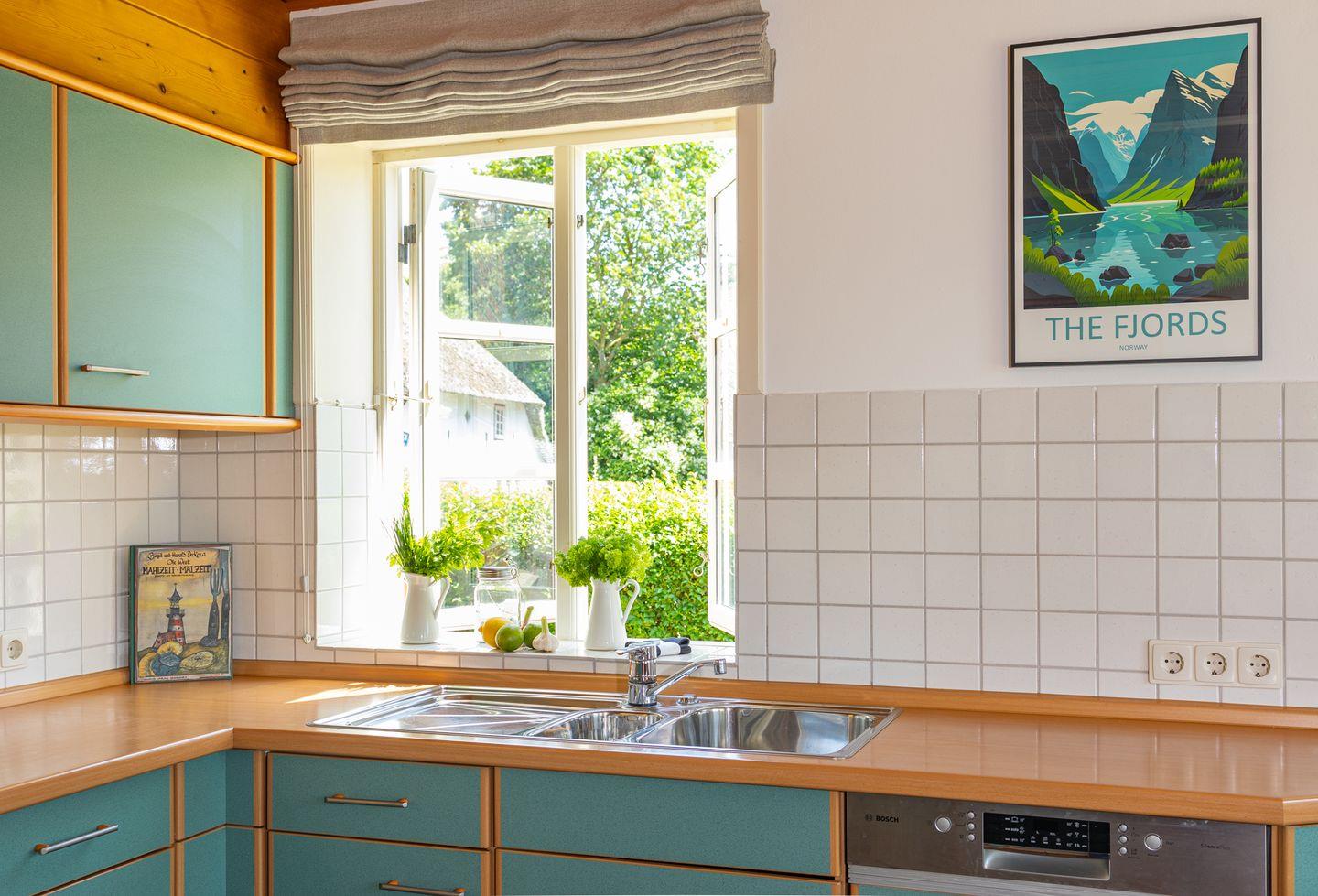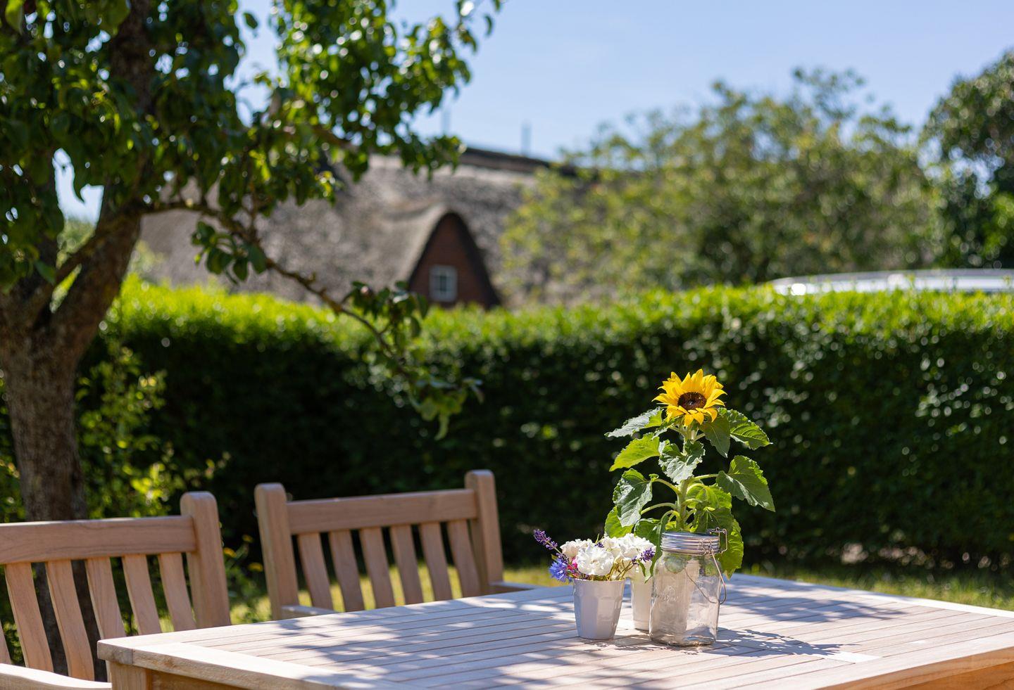 Das Reetdachhaus Stavanger ist ein wunderschönes Ferienhaus für 4 Personen mitten im Nebeler Ortskern. Es ist mit einem Garten eingefasst und befindet sich in unmittelbarer Nähe zu den ansässigen Cafés und Bistros sowie in Sichtweite zur St. Clemens Kirche. Das Friesenhaus besticht durch große Räume, einem Kaminofen, pittoresken Friesenfenstern und Böden aus Holz. Im Garten steht für Sie ein Strandkorb bereit, um die sonnigen Stunden zu genießen. Die Essgruppe unter einem Birnbaum lädt Sie zu Mahlzeiten im Garten ein.
