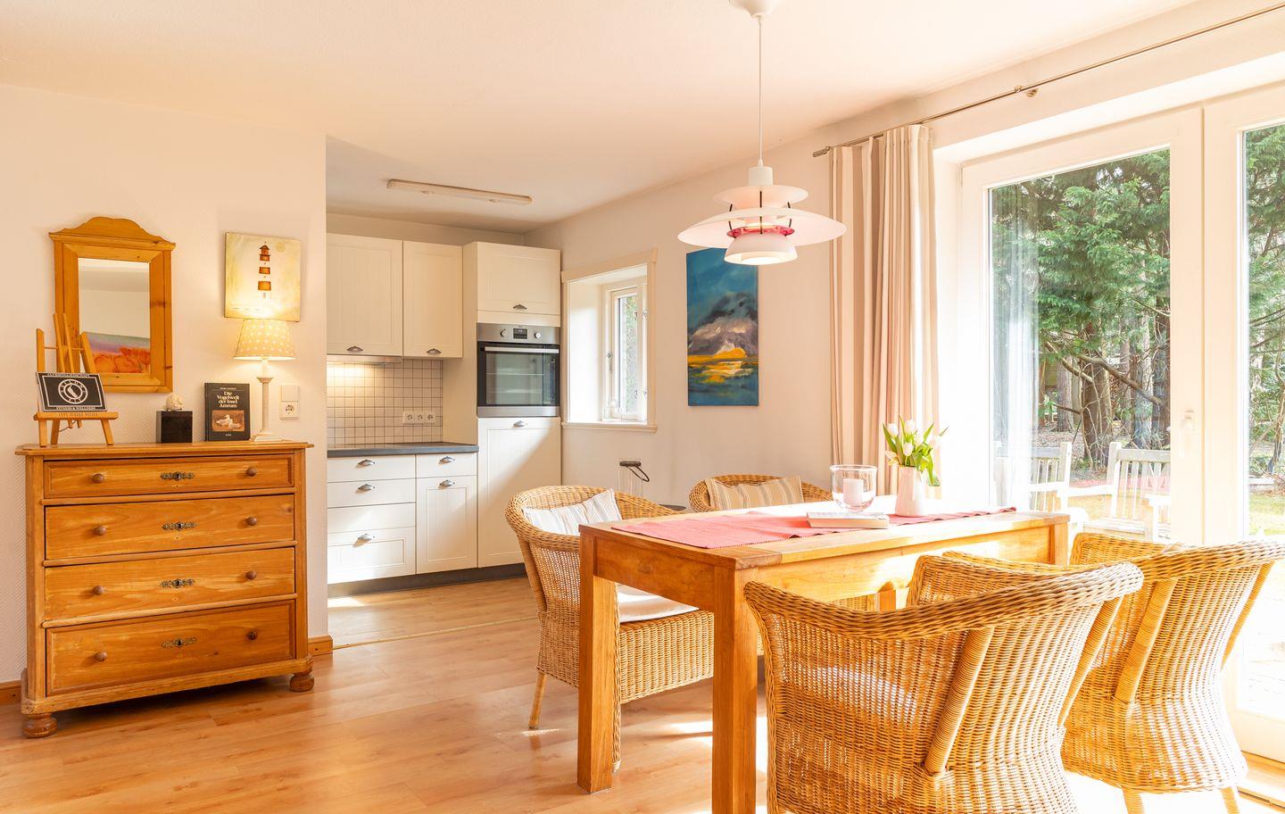 Die Wohnung Bergen befindet im Reetdachhaus Isemann. Mit einer großzügigen Wohnfläche von 85 qm bietet diese Wohnung alles was ein schöner Urlaub auf einer schöne Insel braucht. Das Haus liegt liegt im wunderschnen Ortsteil Westerheide der Gemeinde Nebel auf einem 3200 qm großen Waldgrundstück.