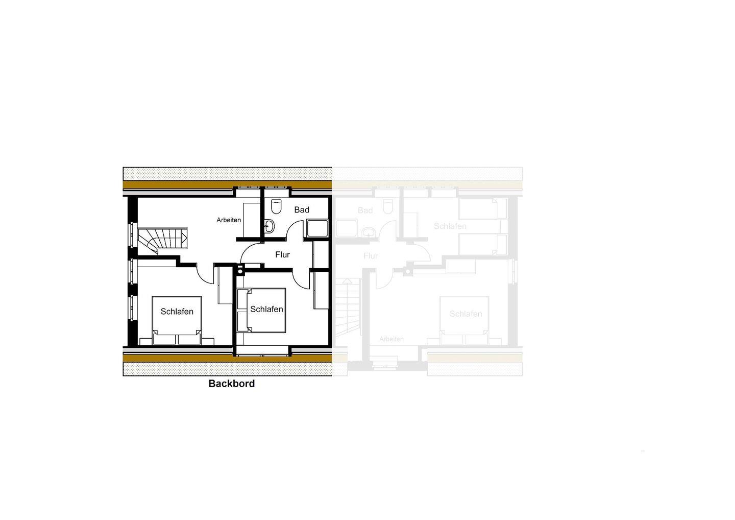 Die 4-Zimmer-Friesenhaushälfte *Backbord* unter Reet (ca. 110 qm Grundfläche) über 2 Etagen im Strandweg 8 in Süddorf auf Amrum bietet Schlafmöglichkeiten für 2 bis 6 Personen.