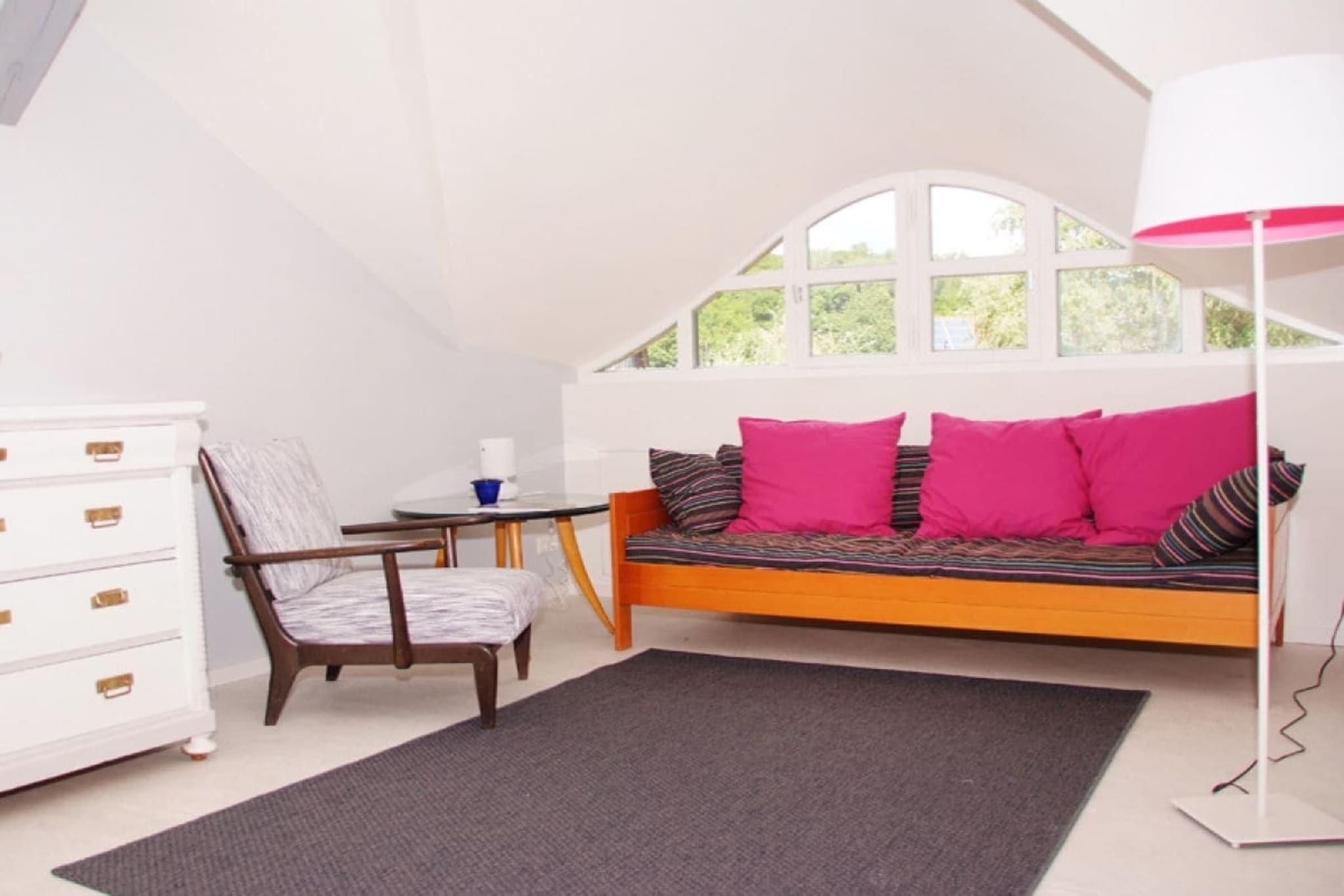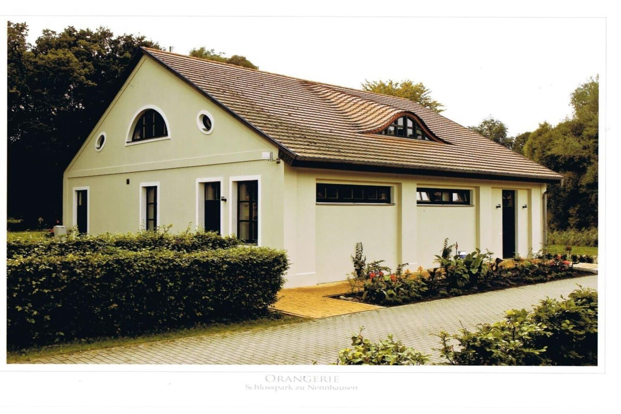 The fully equipped holiday apartment, located on the upper floor, offers plenty of space for 4 people (an additional bed is possible). It was renovated in 2013. There is a wardrobe in the entrance hall and a dining area in the kitchen. The living room is spacious. There are two beds in each bedroom. The bathroom is equipped with a shower, sink, toilet, towel dryer, washing machine. There is also a television. The holiday apartment is located in the wooded Havelland region, just 65 km from Berlin with a train connection, idyllically in a listed park. The village of Nennhausen offers all the shops you need for your daily needs. There is plenty of parking available.