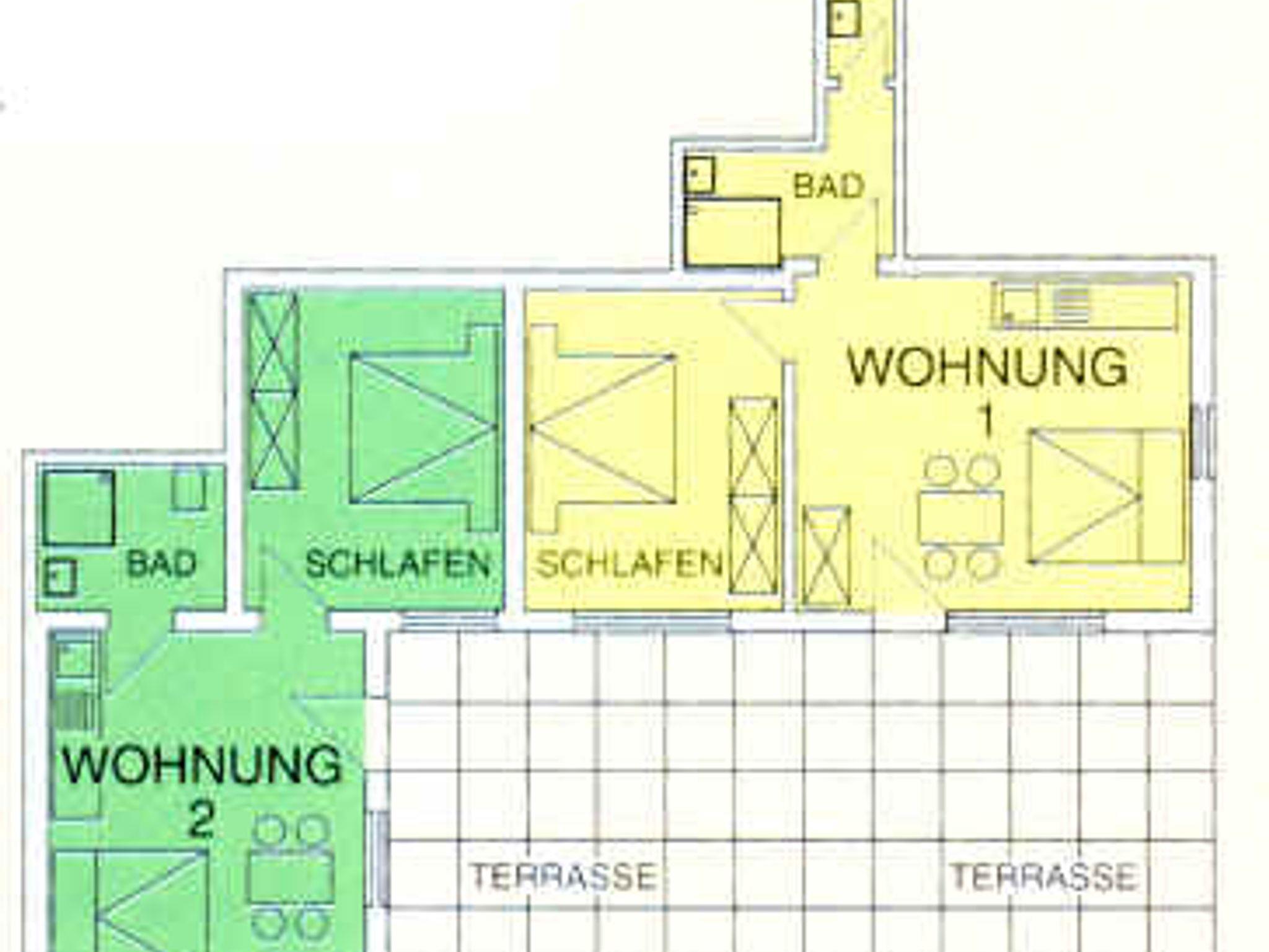 Ferienwohnung 1 und 2 mit je einem Schlafzimmer, Ferienwohnung 3 mit zwei Schlafzimmern. Kinderbett vorhanden. Je 1 Wohnküche mit komplettem Küchenblock. Zugang über die Terrasse. Dusche und WC. Sat-TV-Anschluss und Zentralheizung.