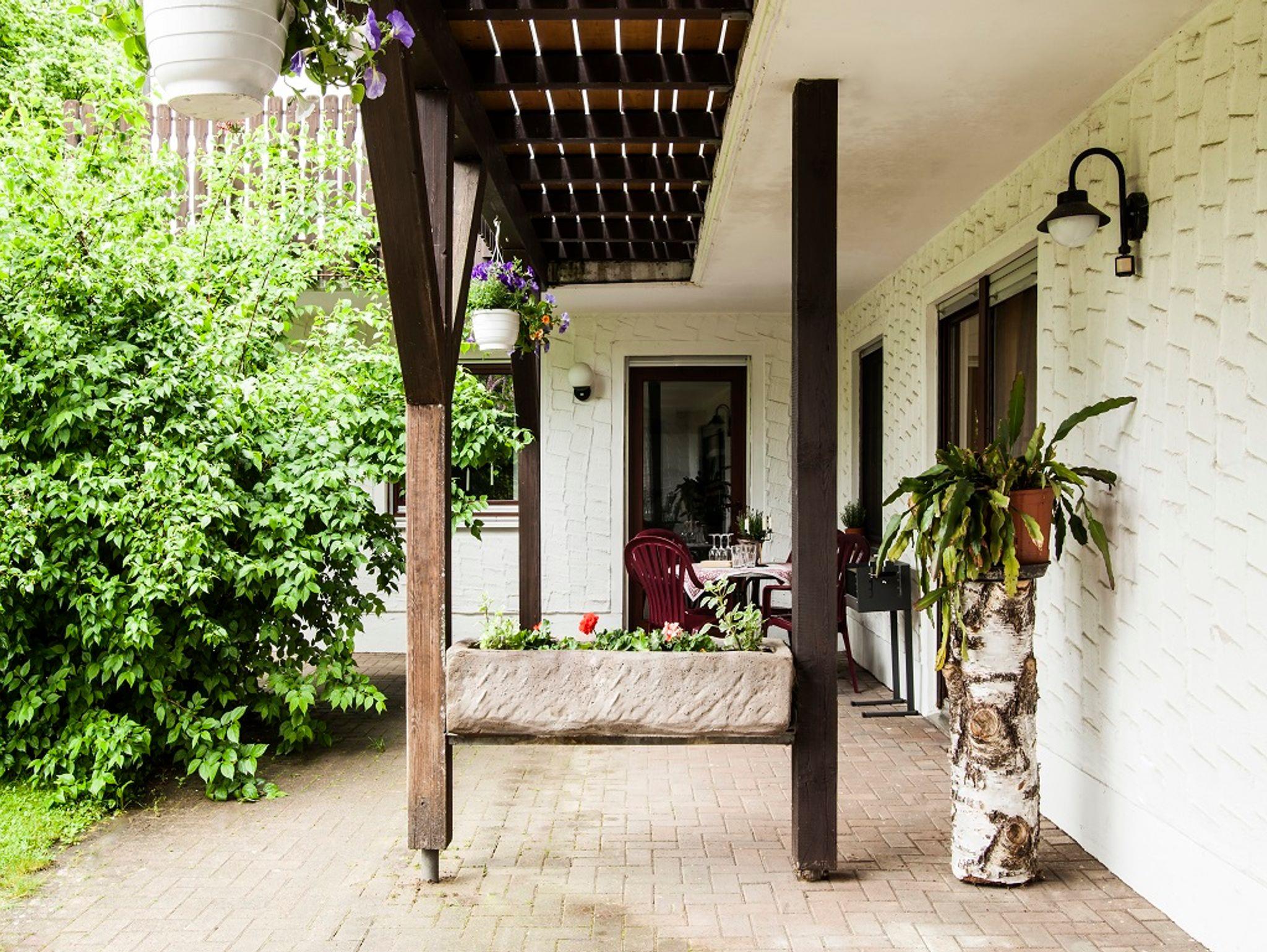 Unser Haus mit Garten liegt in ruhiger Ortsrandlage, jedoch nur 500 m von den Einkaufsmöglichkeiten entfernt.