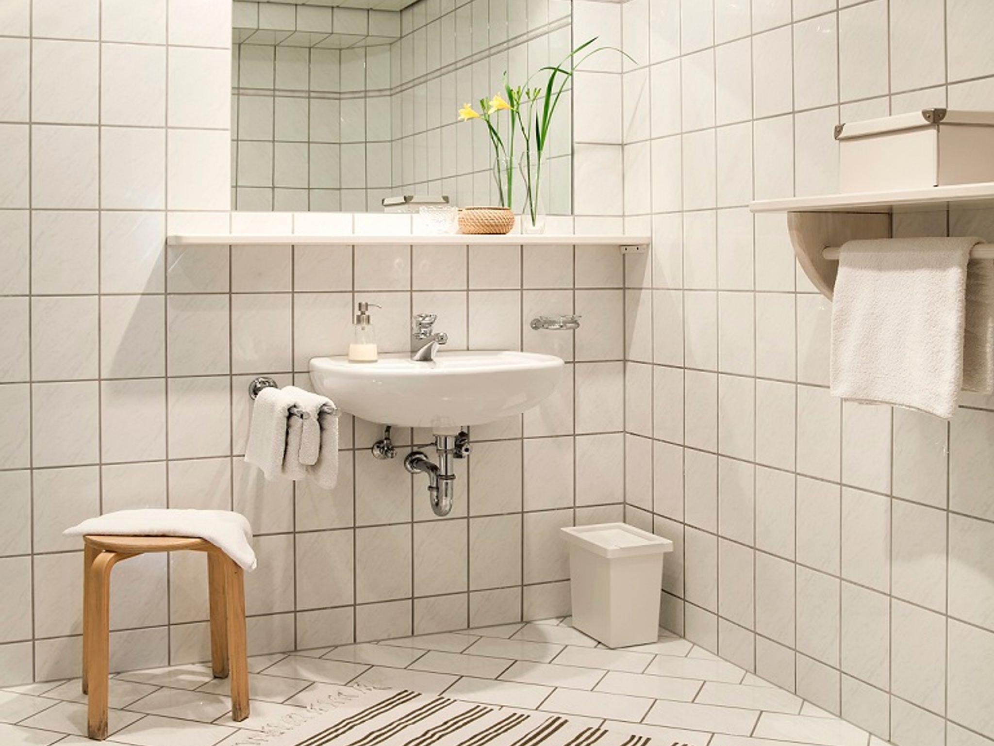 Bad: Mit Waschbecken, Spiegel, Dusche und natürlich frischen Handtüchern.