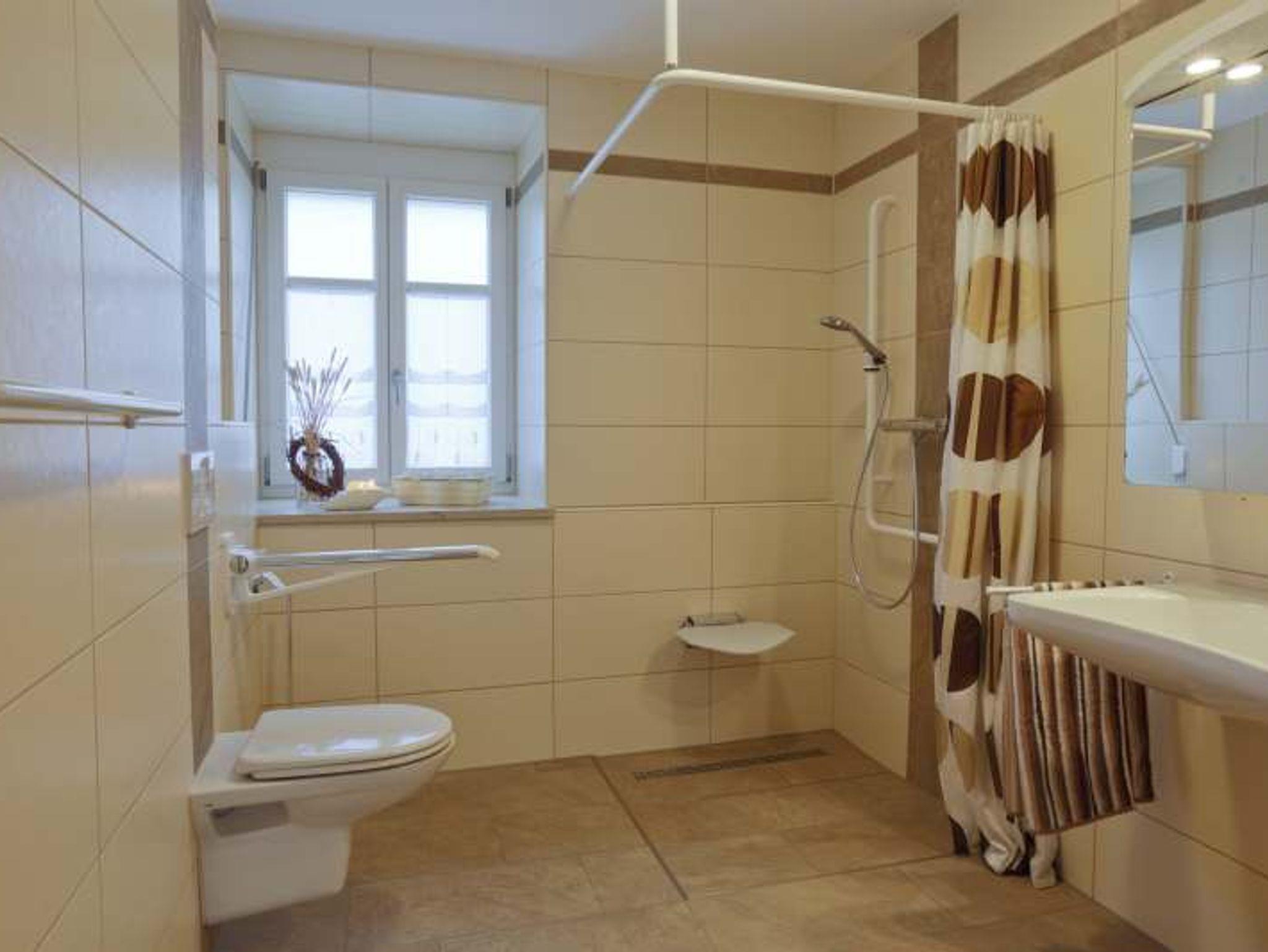 Vom Wohn- und Essbereich aus kann man die Terasse (auch barrierefrei) erreichen. Der Freizeitraum im Dachgeschoss darf mitbenutzt werden, dieser ist allerdings nicht barrierefrei erreichbar.