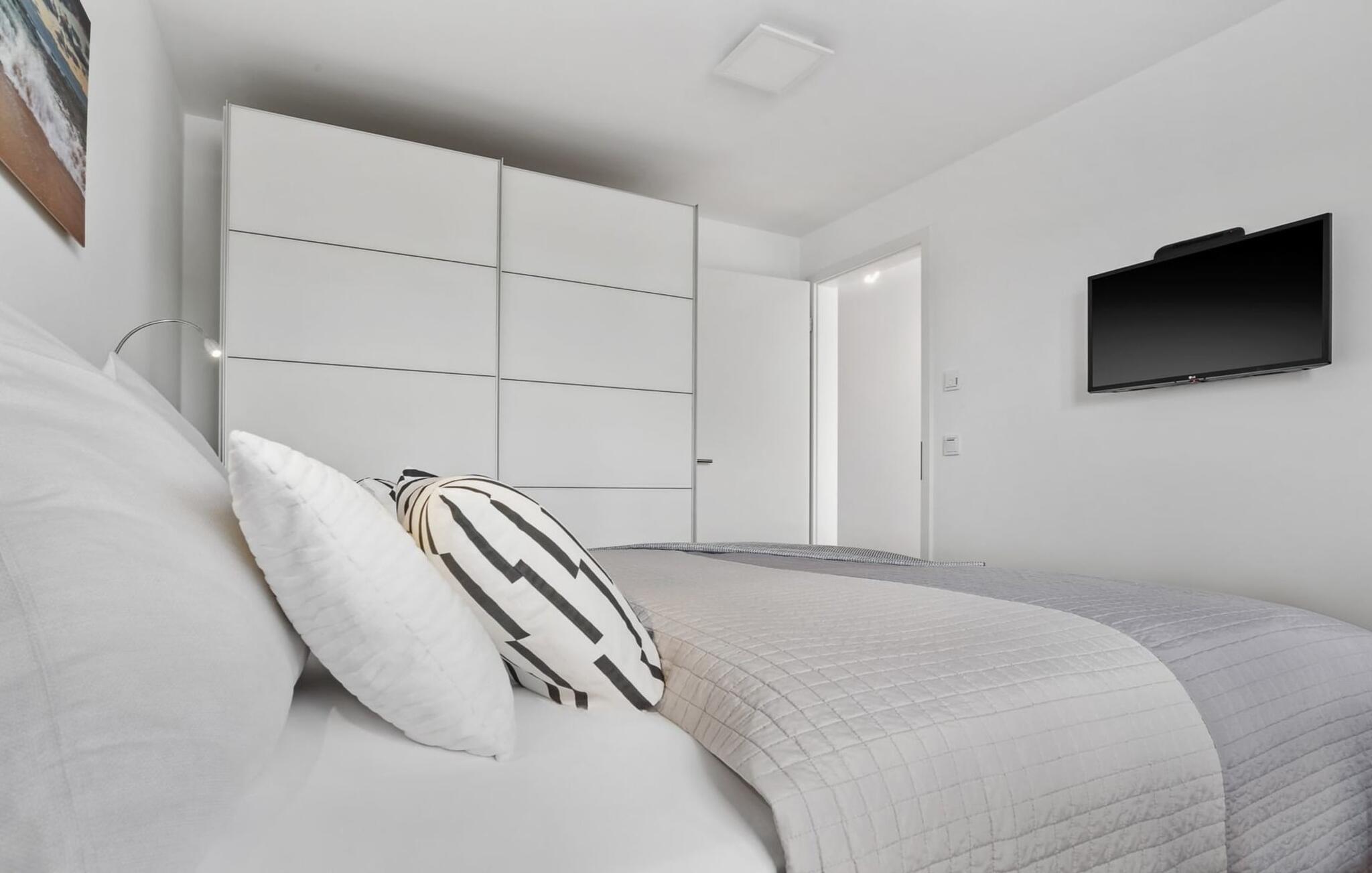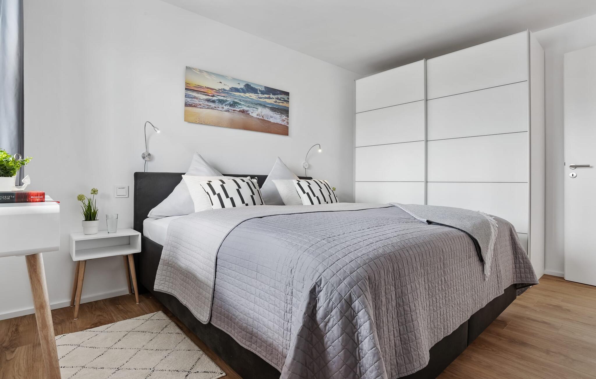 Den moderne, højkvalitets og smagfulde indretning samt det veludstyrede køkken bidrager til afslapning, det samme gør den komfortable dobbeltseng. Dobbeltsengen sikrer afslappende nætter takket være dens madrasser med forskellige hårdhedsgrader.