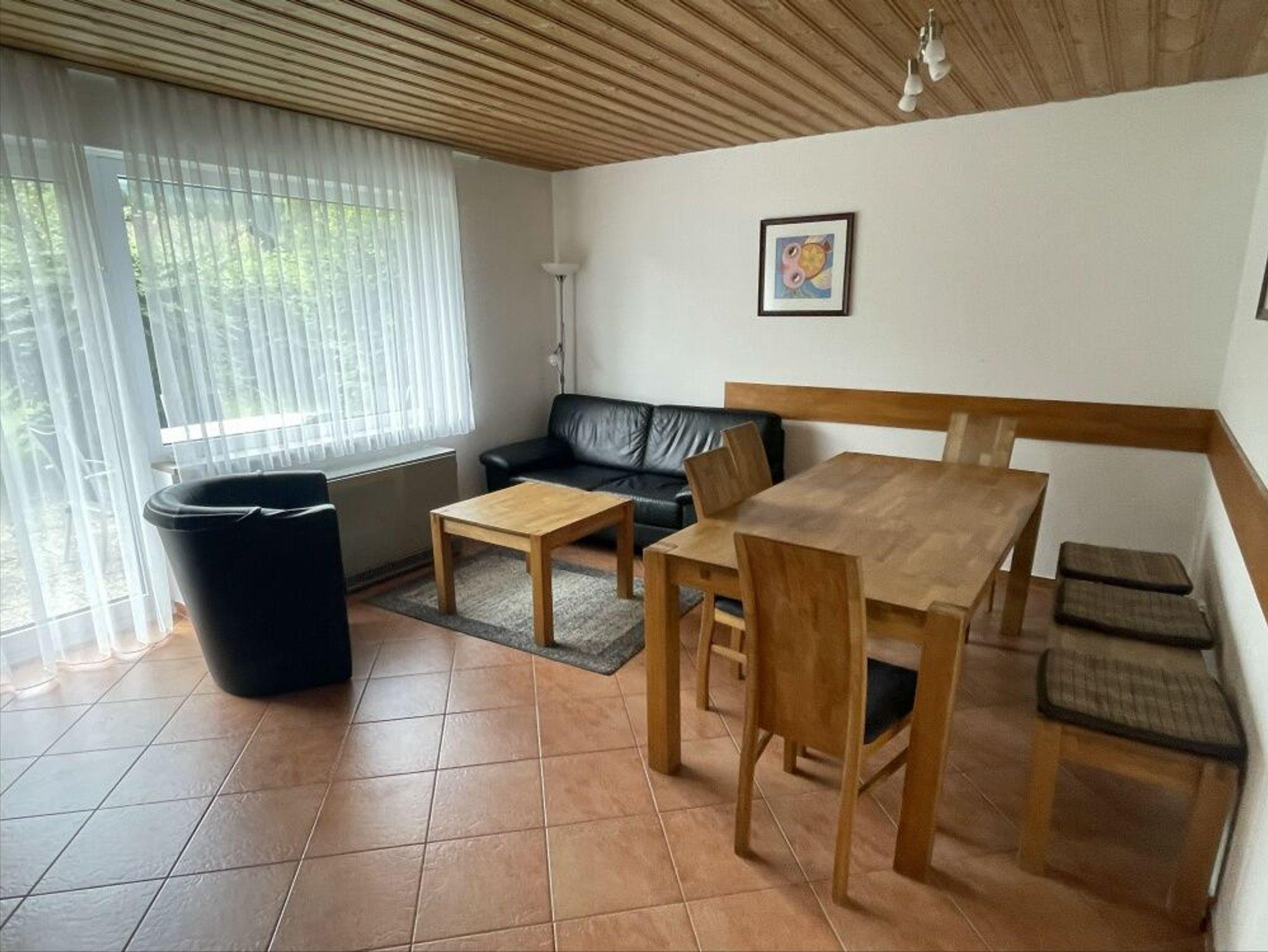 Der Wohn-und Essbereich ist mit einer großen Essecke aus massivem Eichenholz ausgestattet. Die massive Bank und die Stühle bieten für bis zu 6 Personen Platz. Kabelfernsehen mit Full HD LED Flat Screen Fernseher, Stereo- Radio und Spielesammlung sind vorhanden.