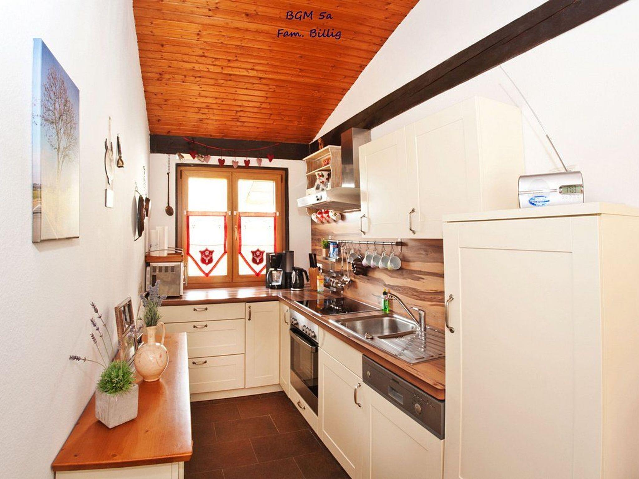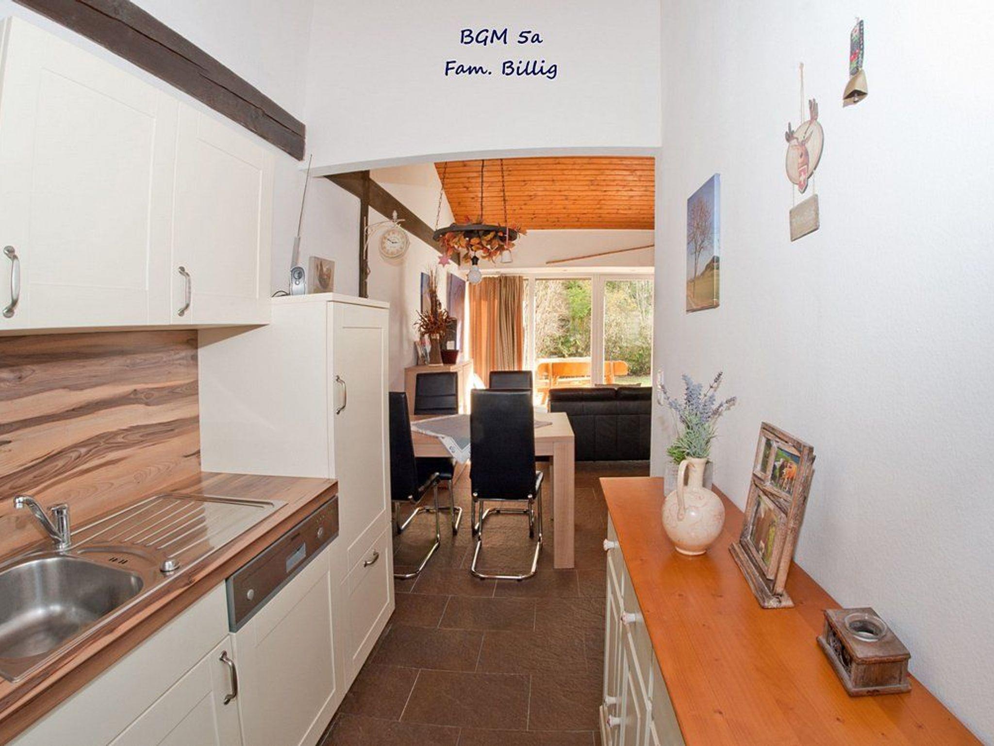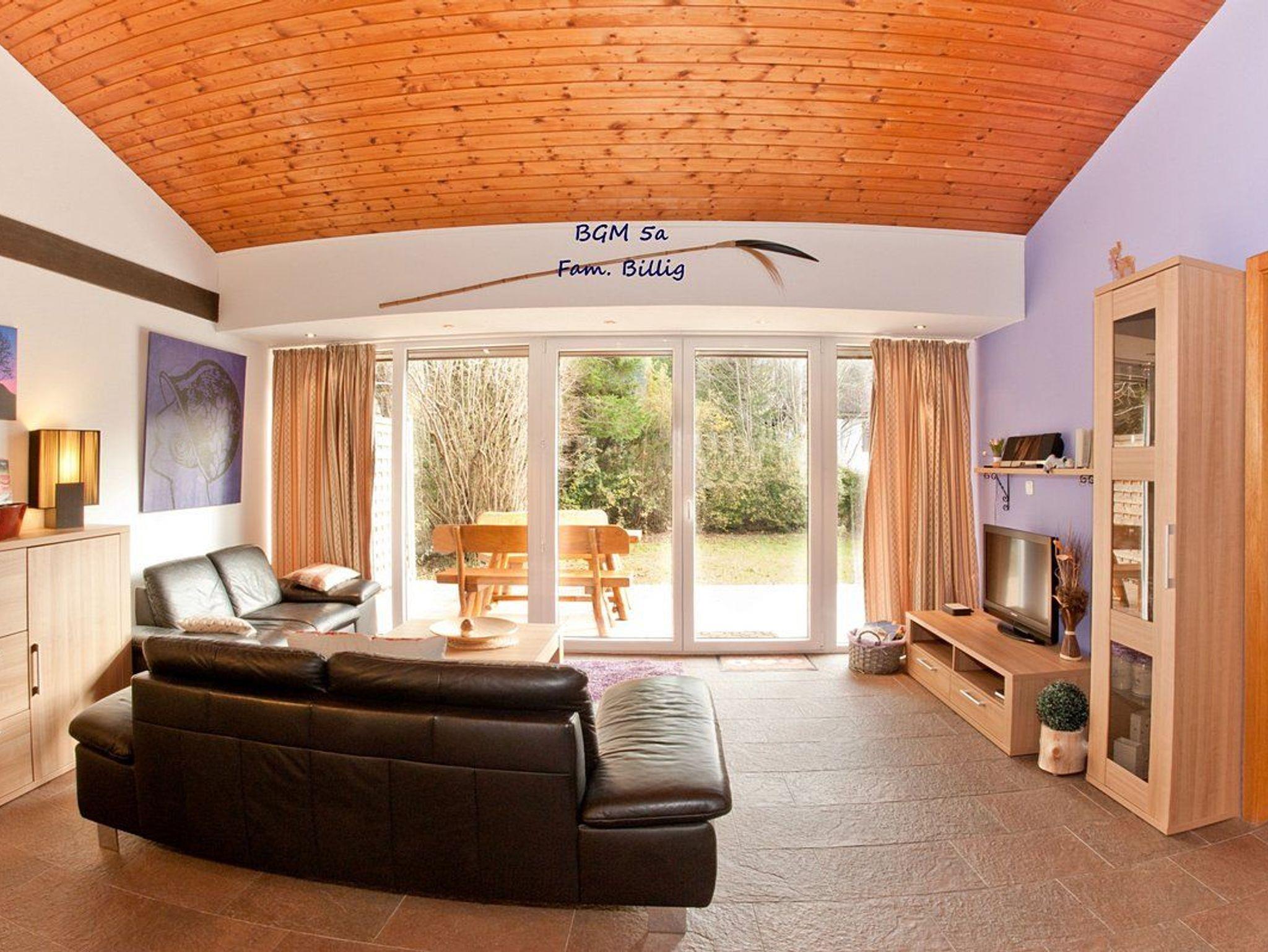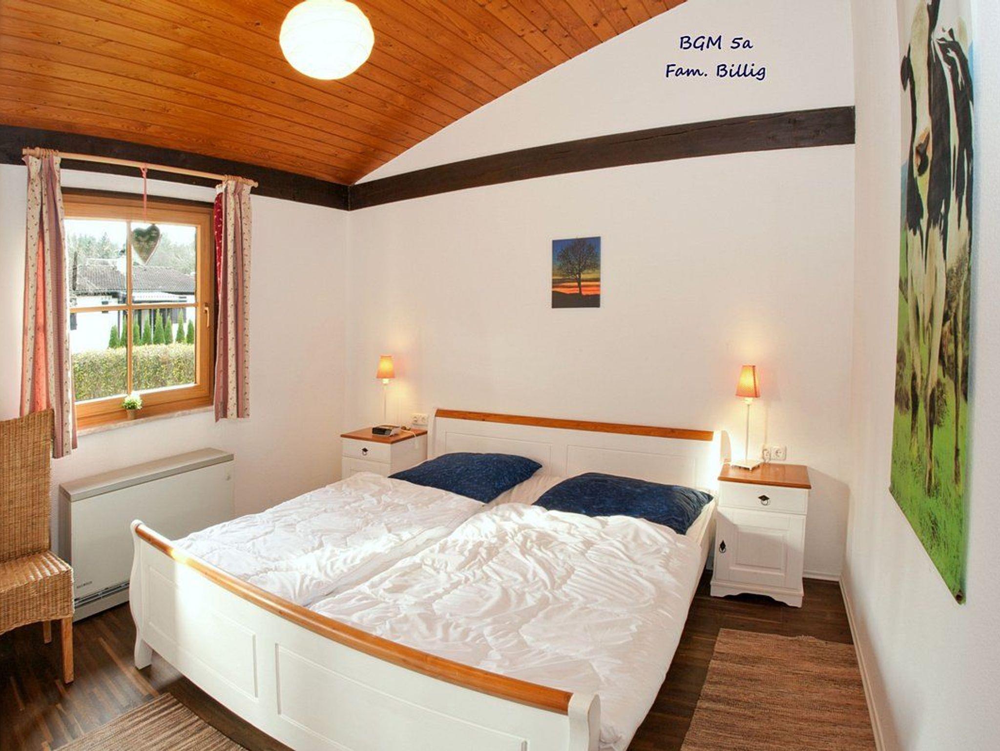 Das Haus verfügt über zwei Terrassen ? eine vor und eine hinter dem Gebäude ? die ganztägig Sonnenplätze bieten. Massive Naturholzmöbel und zwei Sonnenliegen laden zum Entspannen ein. Die Fenster und die Haustür sind im bayerischen Landhausstil gestaltet. Ein optionales Frühstücksbuffet ist in einem nahegelegenen Landgasthof verfügbar.