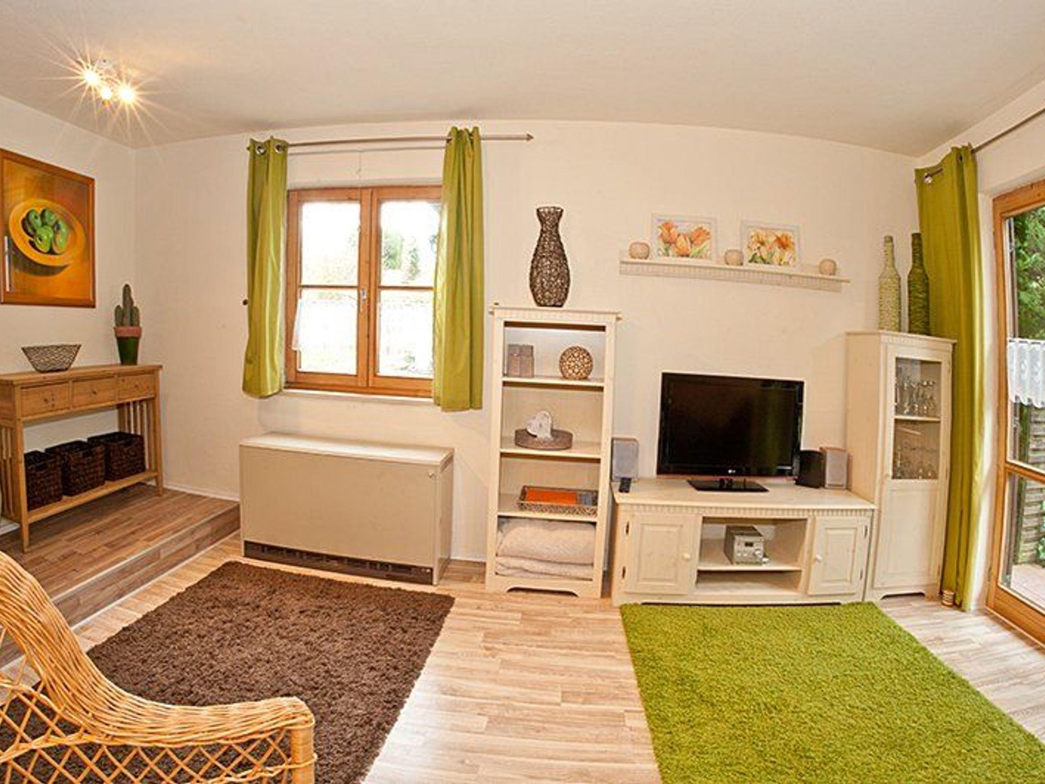 Der Wohnbereich ist modern eingerichtet und verfügt über Fernseher, Kabel- und Internetanschluss sowie eine Stereoanlage. Eine Eckcouch und vorhandene Bücher und Spiele bieten zusätzliche Unterhaltung.