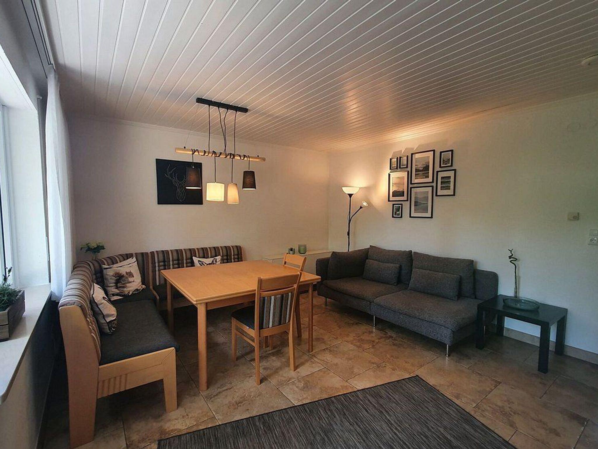 Im hellen, nach Süden ausgerichteten Wohn- und Esszimmer steht eine bequeme Couch inkl. Stehlampe für gemütliche Leseabende bereit. Ein Flachbildfernseher, diverse Bücher und Spiele sowie ein CD-Player/Radio sorgen an Regentagen für Abwechslung. Im kompletten Haus kann das Internet über WLAN genutzt werden.