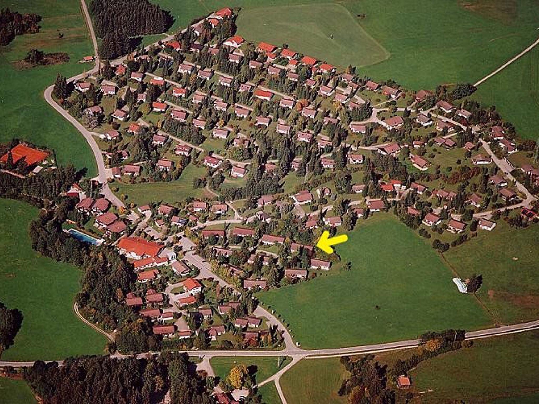 Das Ferienhaus liegt leicht erhöht am Rand des Feriendorfs in ruhiger und zentraler Lage. Die Spielescheune, Gaststätte und das Freibad sind auf kurzen Wegen zu erreichen. Der Grüntensee mit Bademöglichkeit und Klettergarten ist bequem zu Fuß oder mit dem Fahrrad erreichbar.