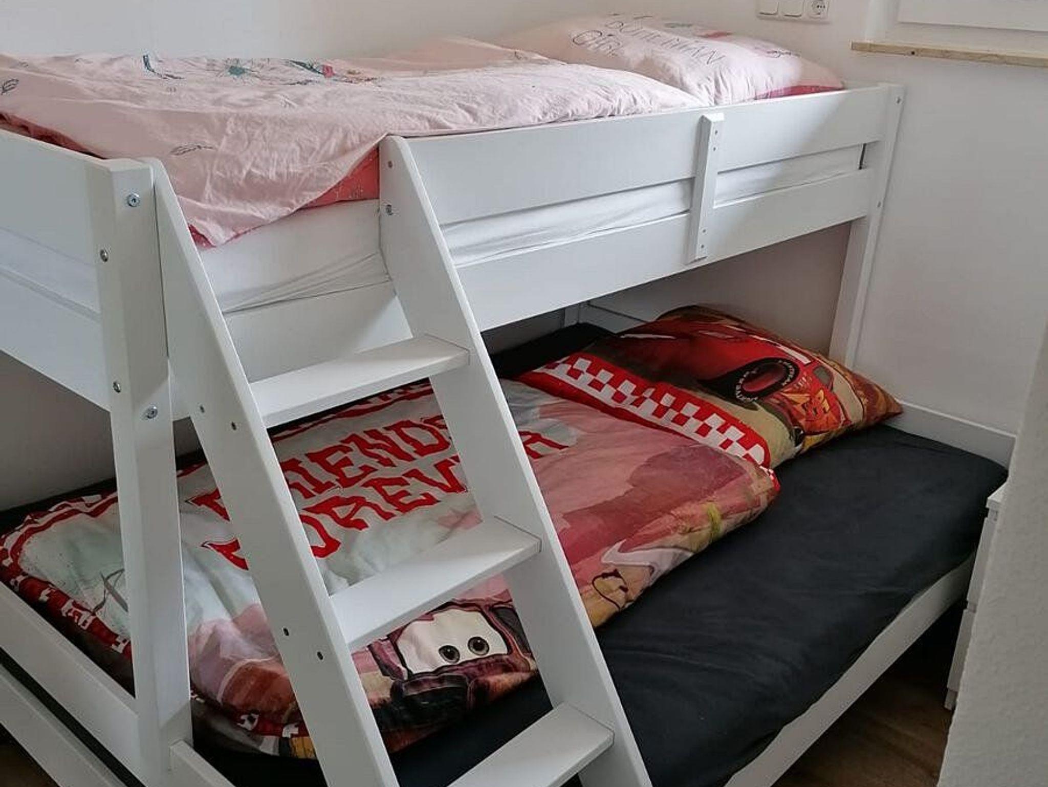 Das hochwertig ausgestattete Ferienhaus im Feriendorf Reichenbach bietet auf zwei Ebenen großzügigen Wohnkomfort mit modernem Ambiente. Im Mittelpunkt steht eine helle Wohnküche mit Induktionskochfeld, Backofen, Kühlschrank mit Gefrierfach, Kaffeemaschine, Toaster, Wasserkocher sowie umfassender Küchenausstattung. Der angrenzende Wohnbereich ist mit einer Eichen-Leder-Eckgarnitur, Fernseher und einem Pelletofen eingerichtet und lädt zum Entspannen ein. Drei gemütliche Schlafzimmer bieten zwei Doppelbetten, ein Stockbett mit breiter Liegefläche unten, Schränke, Kommoden, Leselampen und jeweils einen Fernseher, eines zusätzlich mit eigenem Waschbecken. Das moderne Badezimmer ist mit einer großzügigen Dusche, Waschbecken, WC und Handtuchheizkörper ausgestattet, ergänzt durch ein separates weiteres WC. Ein Abstellraum mit Waschmaschine, Trockner, Wäscheständer und Bügelutensilien bietet zusätzlichen Komfort. Die Terrasse ist nach Süden und Westen ausgerichtet und ermöglicht einen freien Blick auf die Allgäuer Berge, der angrenzende Garten lädt zum Spielen und Verweilen ein. Eine Garage dient als Abstellraum für Fahrräder, Schlitten und Skiausrüstung. Eine Wohnraumlüftung sorgt im gesamten Haus für ein angenehmes Raumklima.