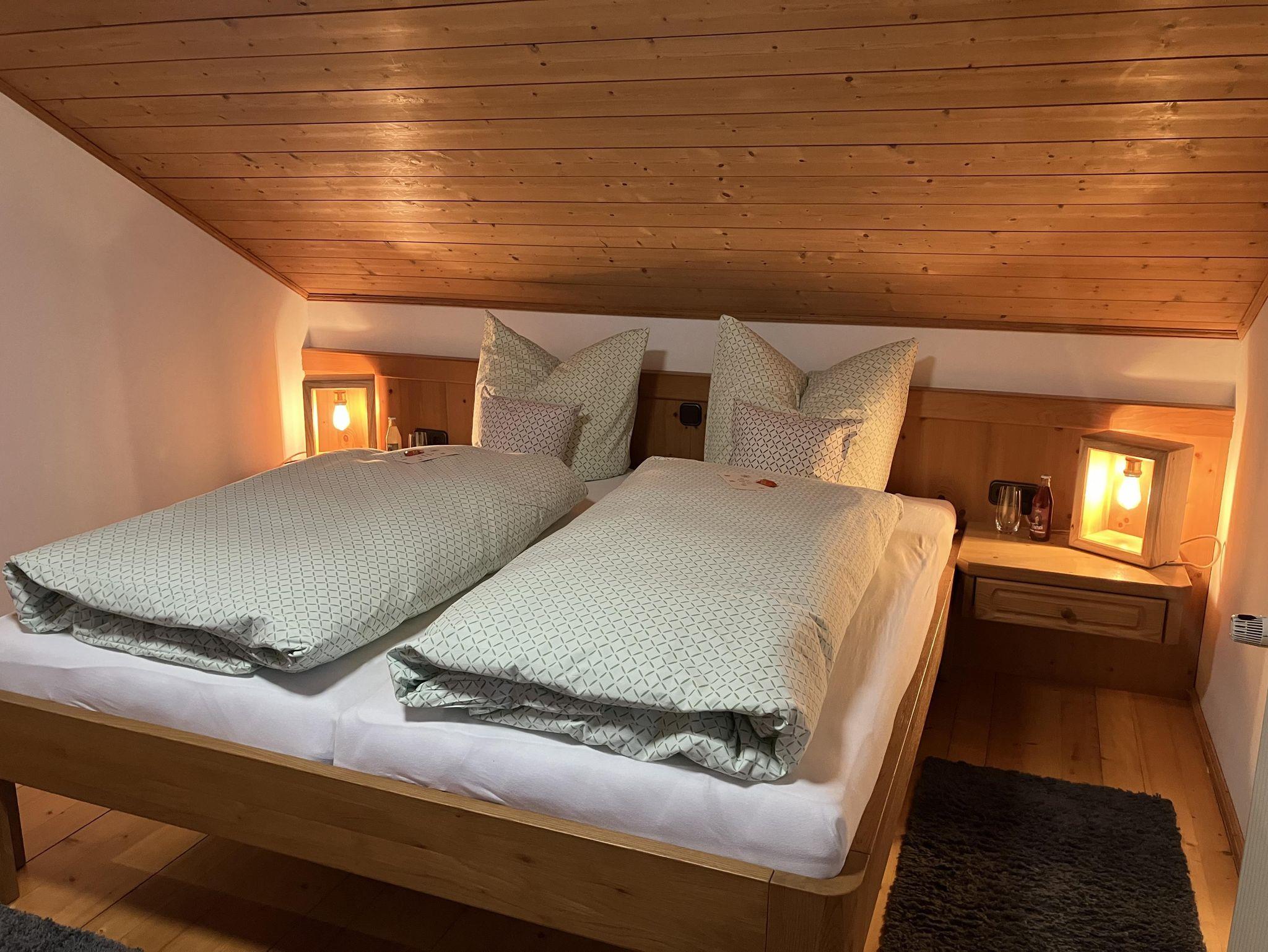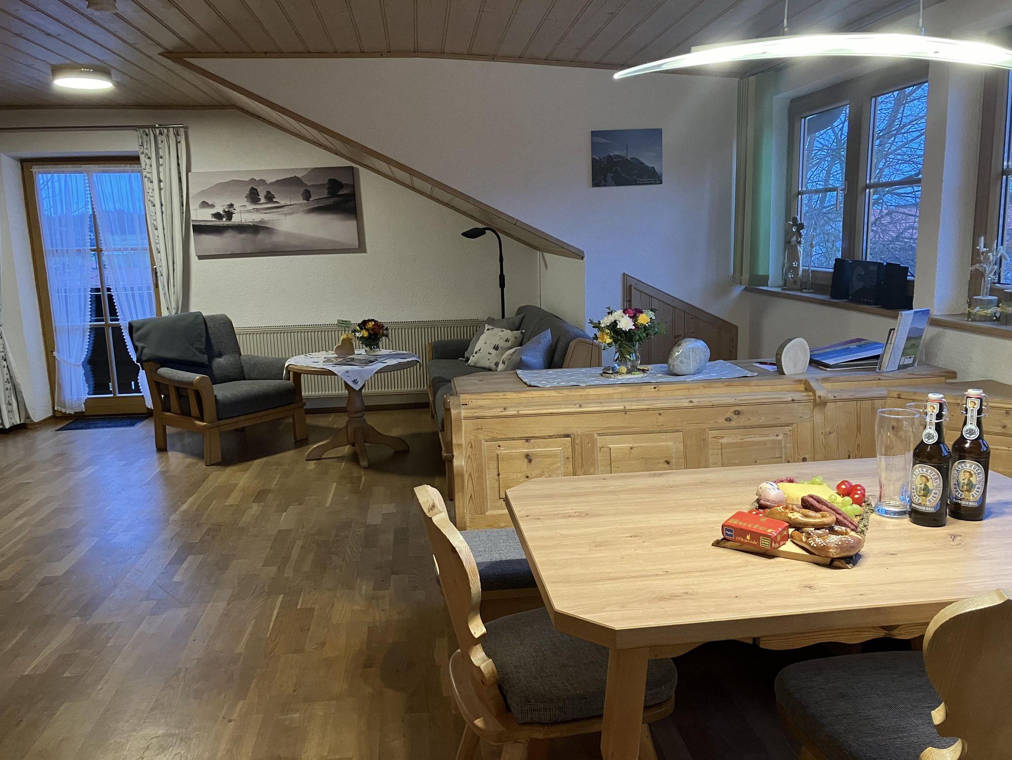 Gemütliche 2-Zimmerferienwohnung Zugspitz (64 qm) im 2. OG mit Balkon inklusive traumhaftem Bergblick, 1 separaten Schlafzimmer, einer großen Wohnküche, einem schönen Badezimmer sowie einem separaten WC. Die Wohnung ist mit Radio und TV sowie kostenlosem Wlan ausgestattet. Die Wohnung ist im ländlichen Stil eingerichtet. Brötchenservice. Komplette Baby und Kleinkindausstattung.
