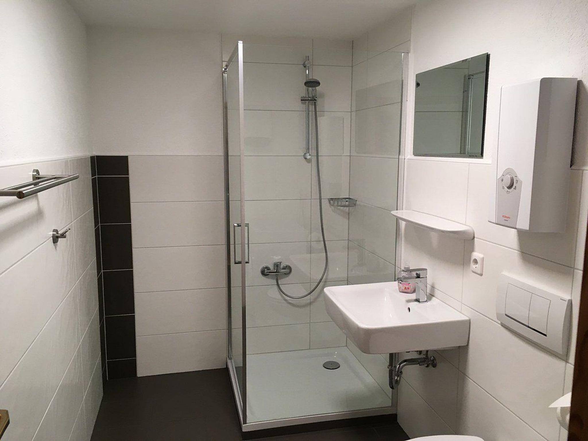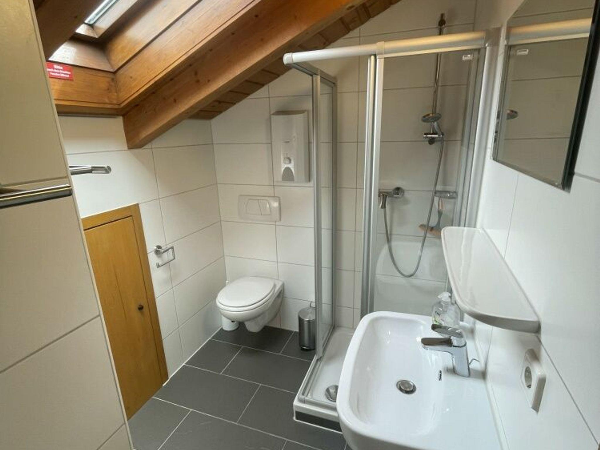 Im Untergeschoss liegt ein weiteres Schlafzimmer mit Doppelbett sowie ein ebenfalls neu renoviertes Badezimmer mit Dusche, WC und Waschmaschine. Ein separater Abstellraum steht ebenfalls zur Verfügung.