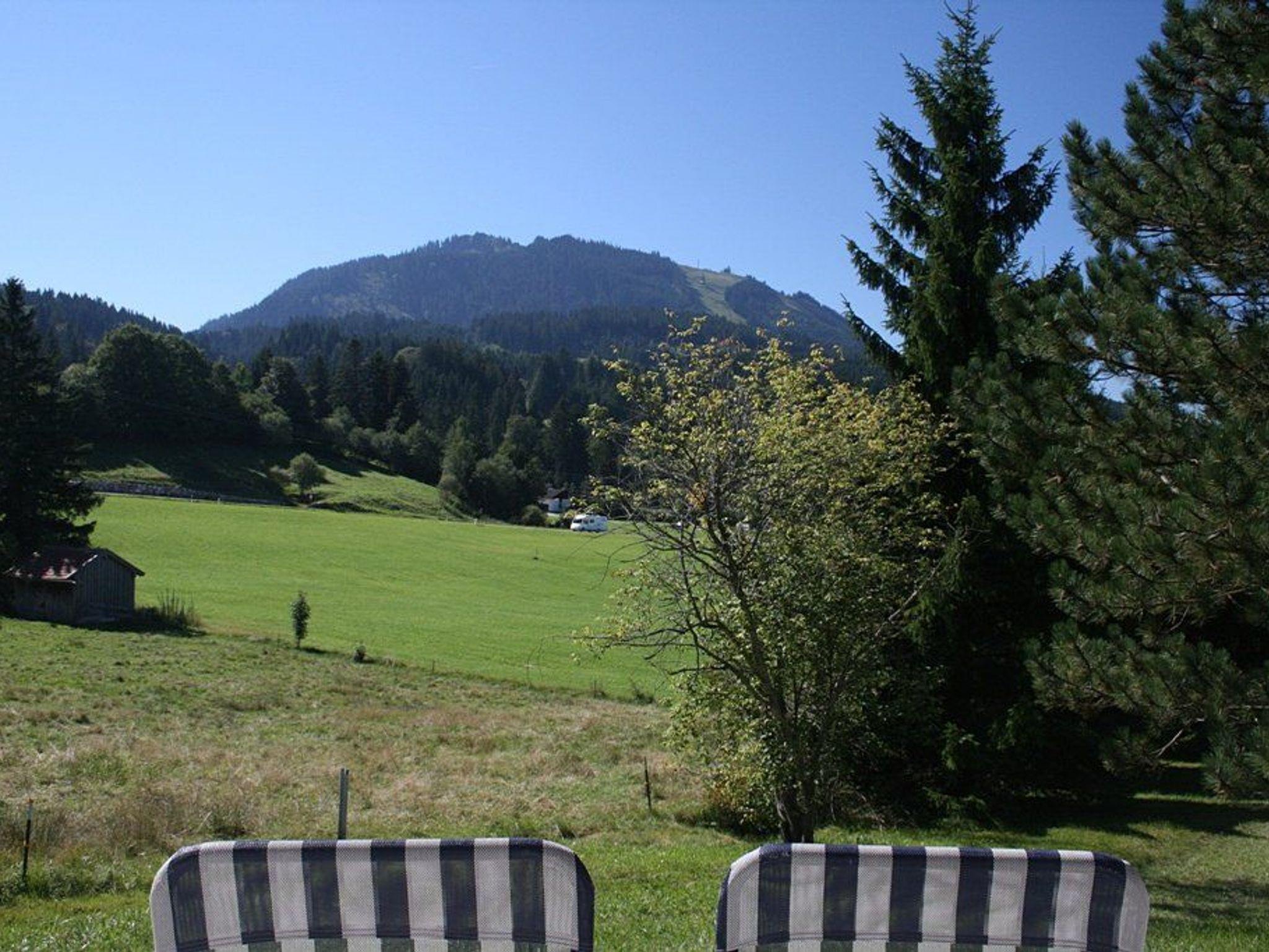 Das Ferienhaus steht auf einem 1000 qm großen Grundstück am Rande des Feriendorfes. Von der großen Terrasse hat man einen herrlichen Blick auf die Allgäuer Alpen von der Alpspitze bis zum Grünten.