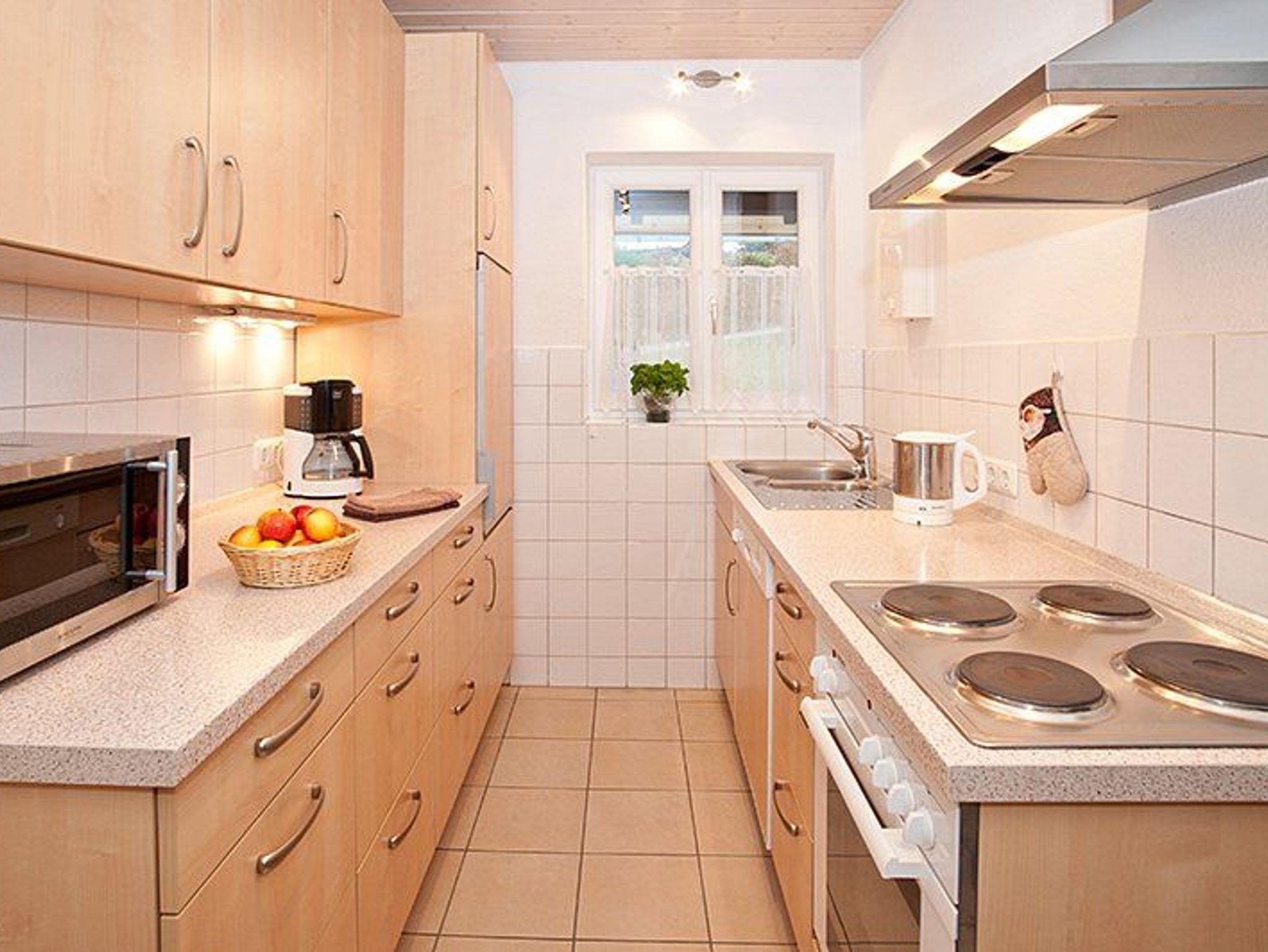 Die neue Küche ist mit allen notwendigen Küchengeräten wie Kühlschrank (3-Sterne Gefrierfach), Herd mit Backofen, Spülmaschine, Mikrowelle, Wasserkocher und Handmixer ausgestattet. Weiterhin ist eine Waschmaschine vorhanden.