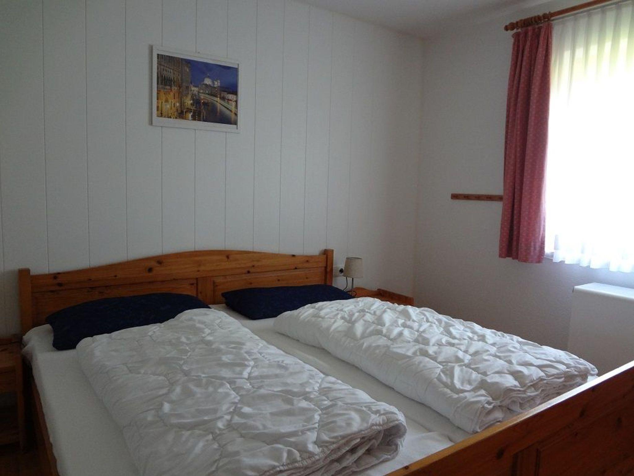 Diese gemütliche Wohnung bietet ein Schlafzimmer mit Doppelbett sowie ein zweites, kleineres Schlafzimmer mit Einzelbett. Das Wohnzimmer führt direkt auf die sonnige Südterrasse. Eine separate Küche mit Außenfenster, eine innenliegende Dusche und ein separates WC mit Außenfenster runden das Angebot ab.