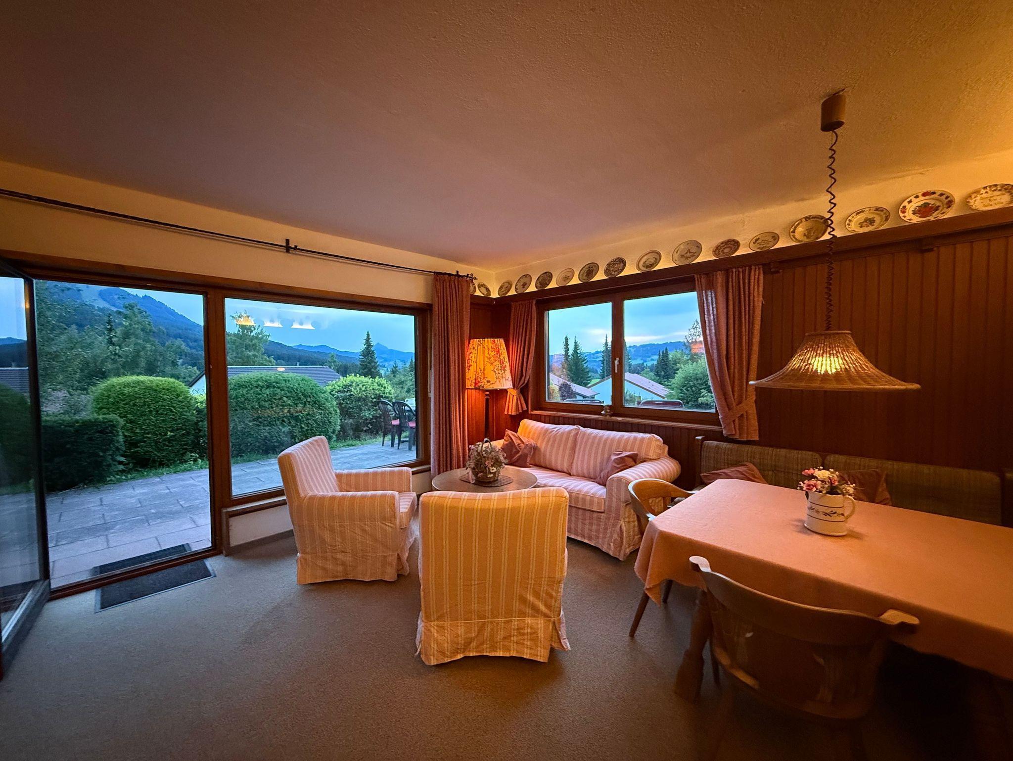 Über die anderen Häusern hinweg sehen Sie die Reutterwanne und den Grünten.