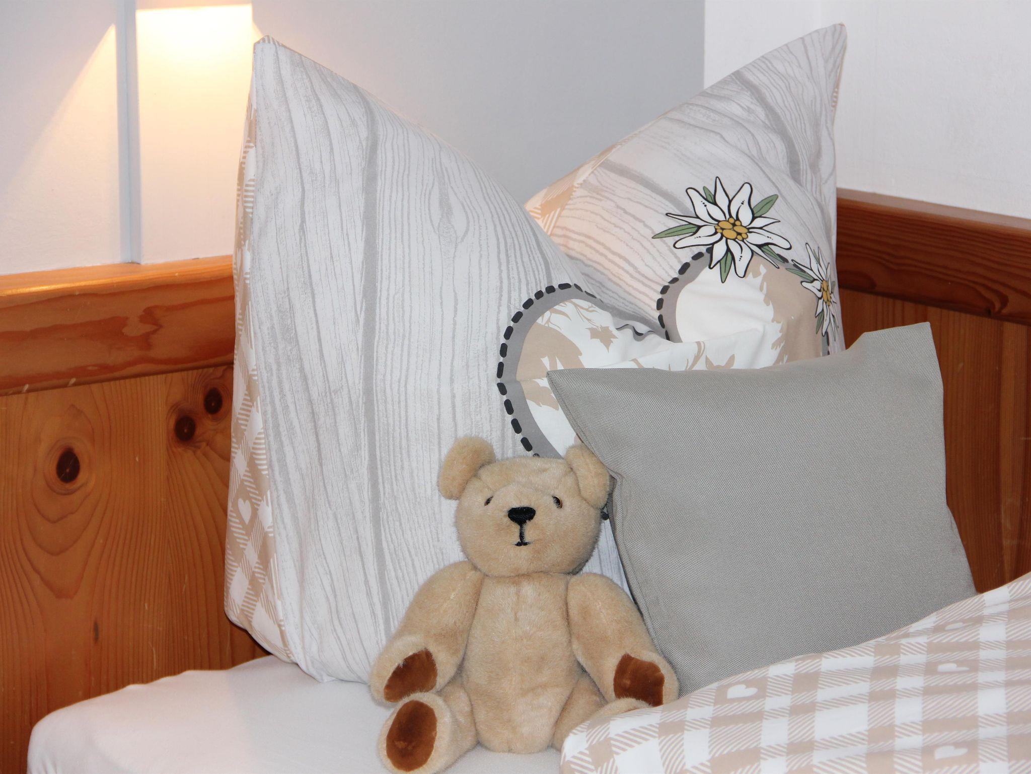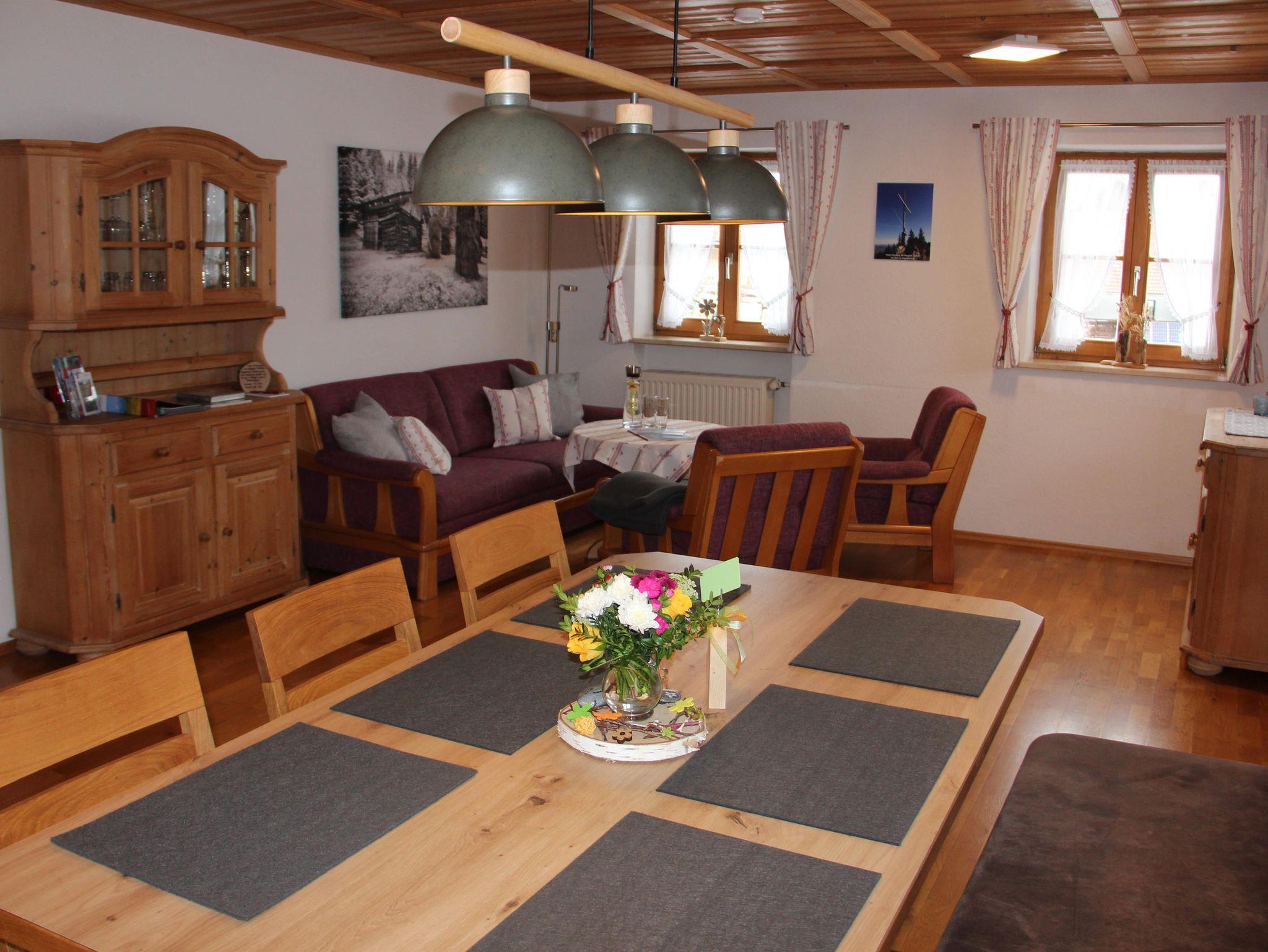 Gemütliche 3-Zimmerferienwohnung Edelsberg (84 qm) mit Balkon inklusive traumhaftem Bergblick, 2 separaten Schlafzimmern, einer großräumigen Wohnküche, einem schönen Badezimmer sowie einem separaten WC. Die im ländlichen Stil eigerichtete Wohnung ist mit Radio und TV sowie kostenlosem Wlan ausgestattet. Brötchenservice. Komplette Baby und Kleinkindausstattung.