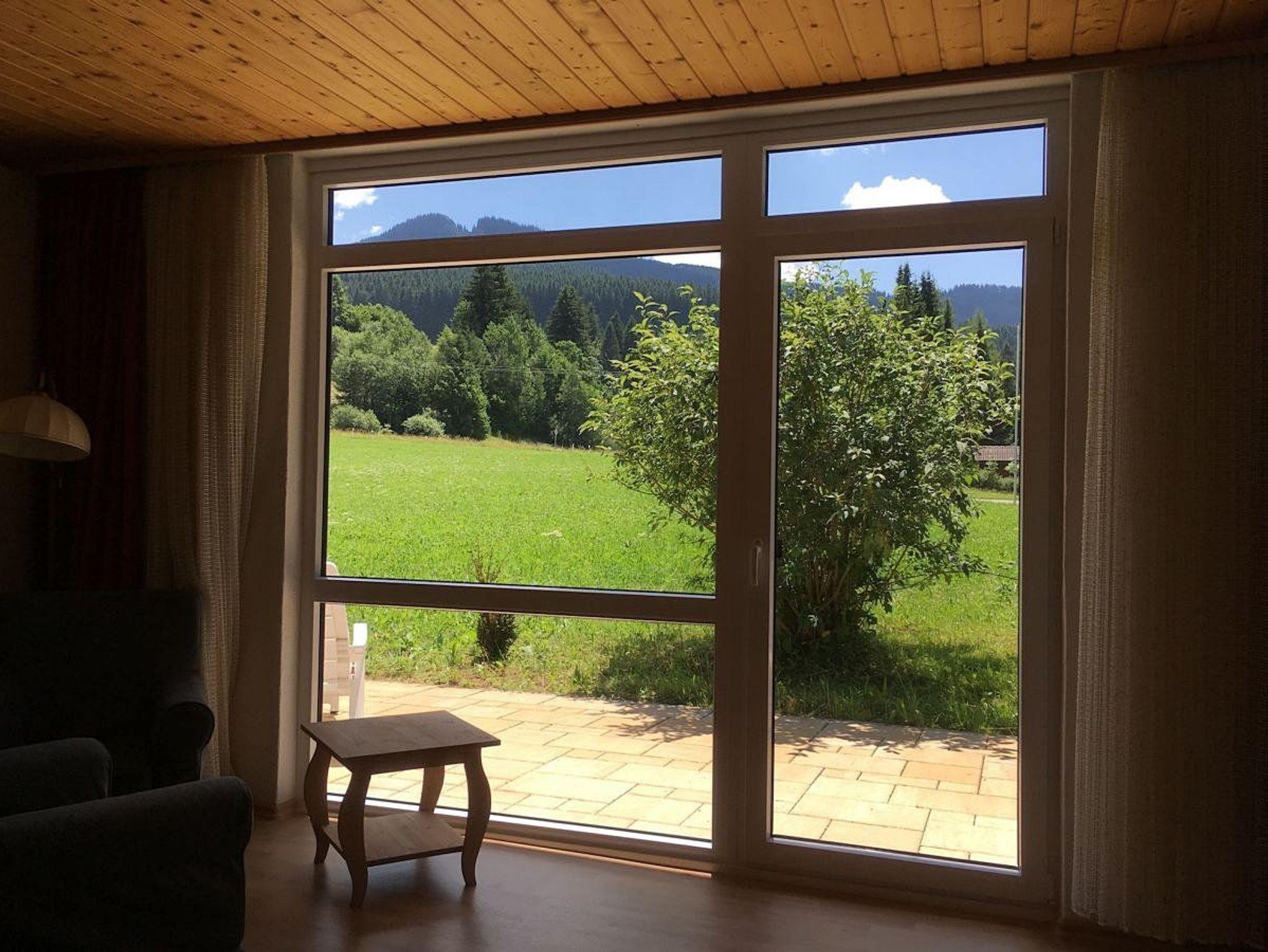 Eine sonnige Terrasse mit Blick auf Alpspitz und Reutter Wanne lädt zum Sonnen und Entspannen ein.