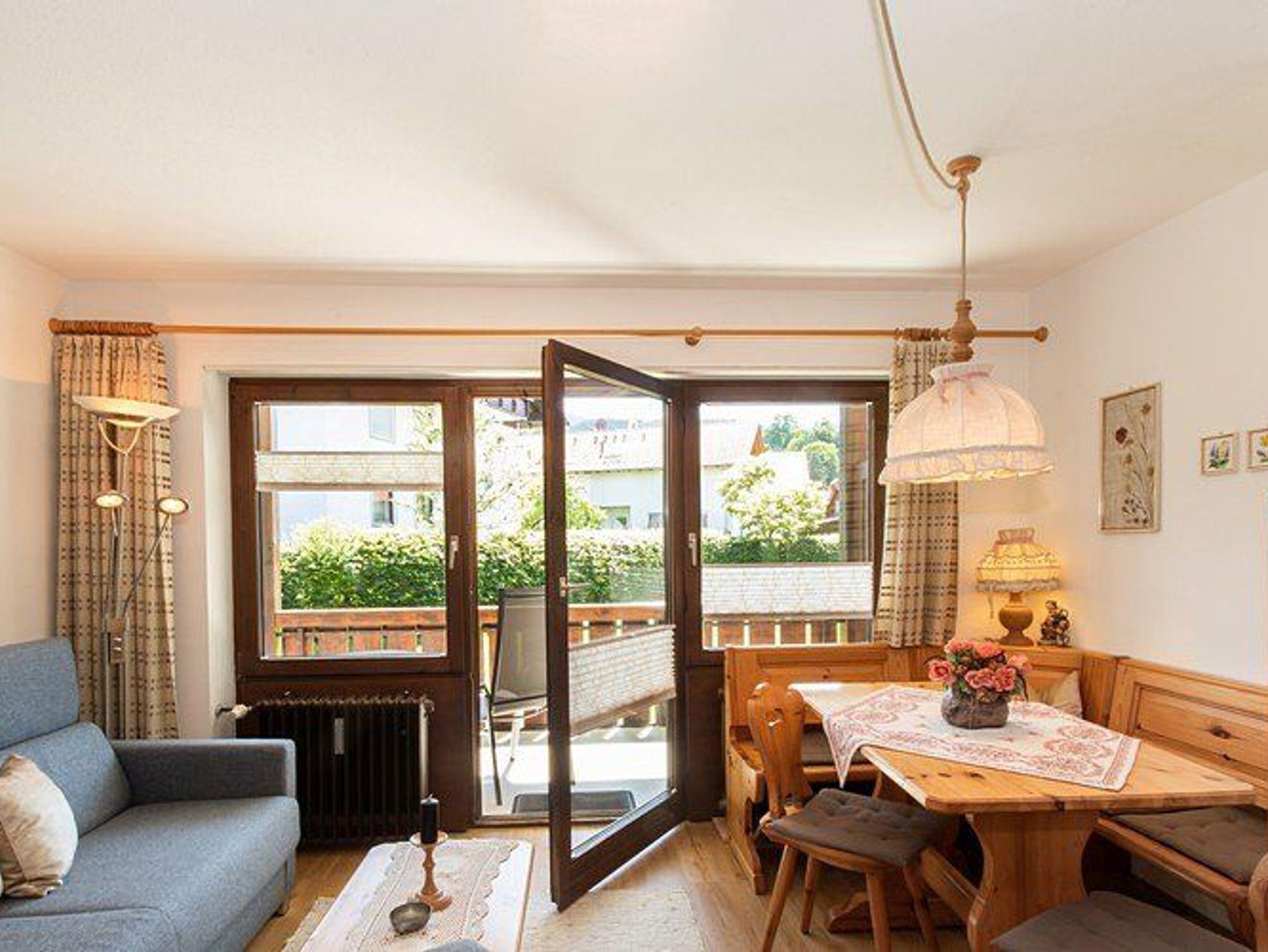 2-Zimmer-Ferienwohnung (50 qm) im Erdgeschoss, gute Ausstattung, Wohnraum mit Essecke und Schlafcouch, Küchenzeile (Spülmaschine), Schlafzimmer (Doppelbett), Bad/WC, überdachter sonniger Balkon. W-LAN Internetanschluss, TV, Radio, Toaster, Bügeleisen etc. vorhanden. Waschmaschine, Skikeller, Tischtennisraum in der Anlage. Kuranwendungen, Bäder, Massagen etc. in der Wohnanlage möglich. Pkw-Stellplatz vor dem Haus.