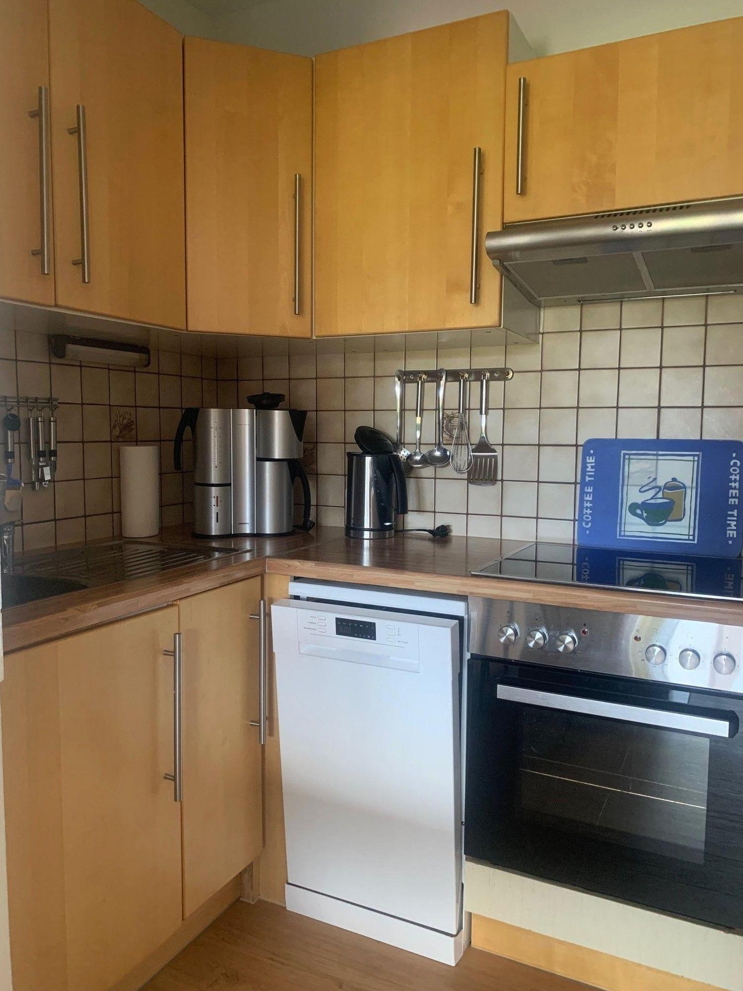 Das Haus hat im Erdgeschoss ein Wohn-Esszimmer mit offener Küche, 43 Zoll Smart TV, DVD Player, ein geräumiges helles Bad und einen Abstellraum. Die Küche ist komplett eingerichtet mit Herd, Ceranfeld, Geschirrspüler, Kühl-und Gefrierkombination, Dunstabzugshaube. zudem finden Sie dort Kaffeemaschine, Toaster, Wasserkocher, und natürlich Geschirr, Töpfe und Pfannen.