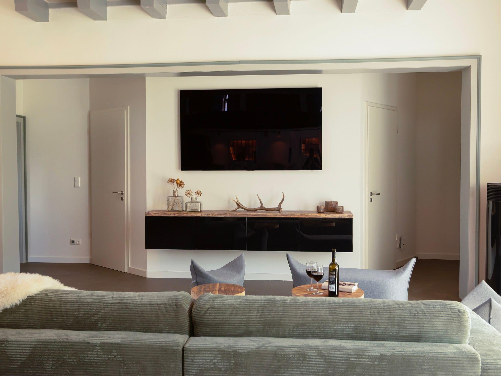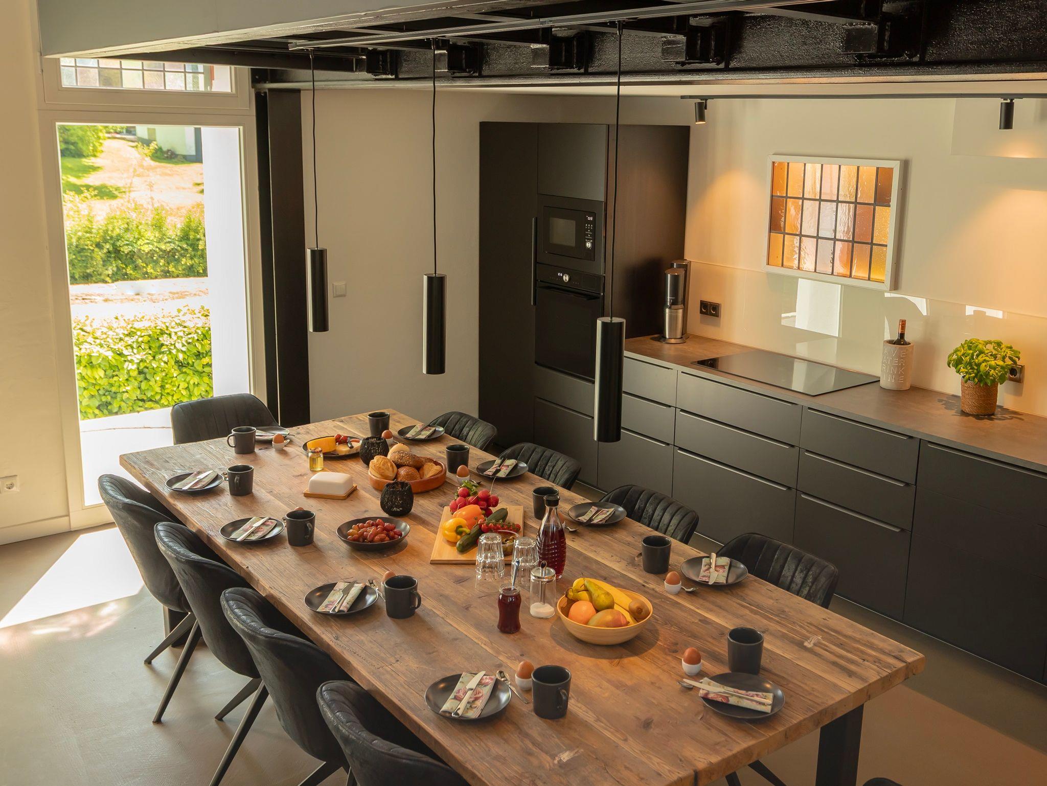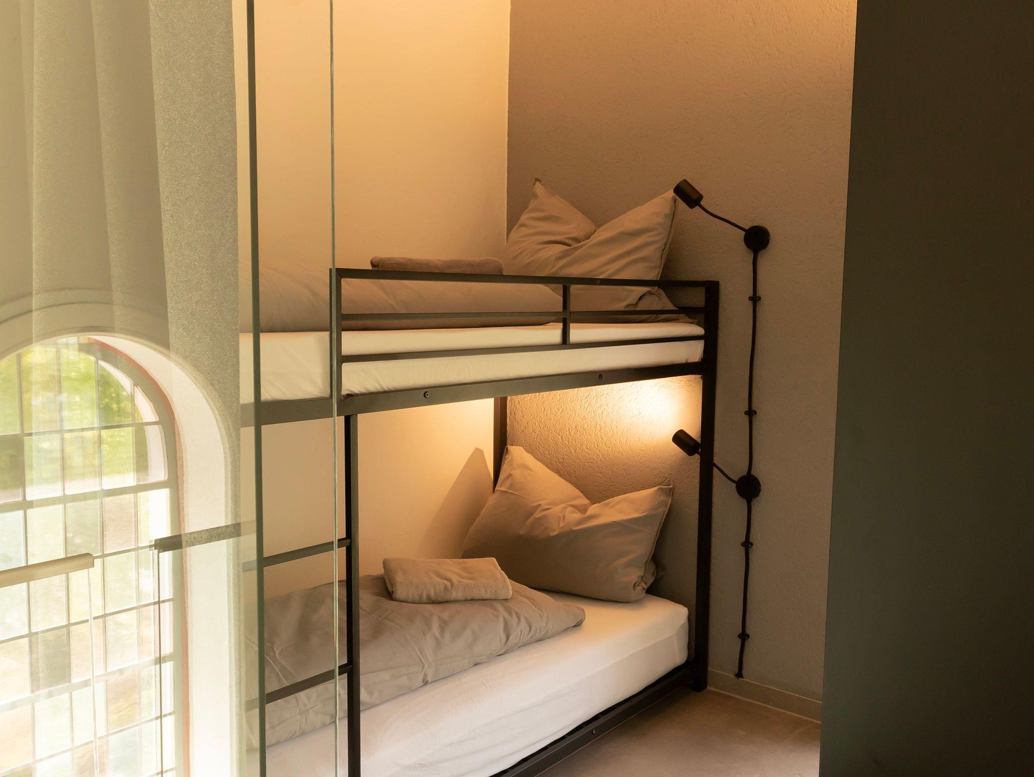 Das liebevoll umgebaute Ferienhaus in einer ehemaligen Kapelle bietet auf 150 Quadratmetern Platz für bis zu 10 Personen. Fünf individuell gestaltete Schlafzimmer – darunter drei mit Doppelbetten und zwei mit Etagenbetten – verteilen sich auf Erdgeschoss und Emporen. Drei moderne Bäder, teils mit Regendusche, sorgen für Komfort, ebenso wie Fußbodenheizung in allen Räumen. Im großzügigen Wohn- und Essbereich unter dem alten Kirchenschiff erwartet Sie ein Esstisch für zehn Personen, bequeme Sofas, ein Pelletofen und ein 77-Zoll-Smart-TV. Die voll ausgestattete Küche im ehemaligen Altarraum lädt zum gemeinsamen Kochen ein. WLAN, Bettwäsche sowie Hand- und Küchentücher sind inklusive. Draußen genießen Sie eine möblierte Terrasse mit Grill, eine Grünfläche zum Entspannen, drei Parkplätze sowie eine Ladesäule für E-Autos. Fahrräder können sicher in einer Garage untergestellt werden.