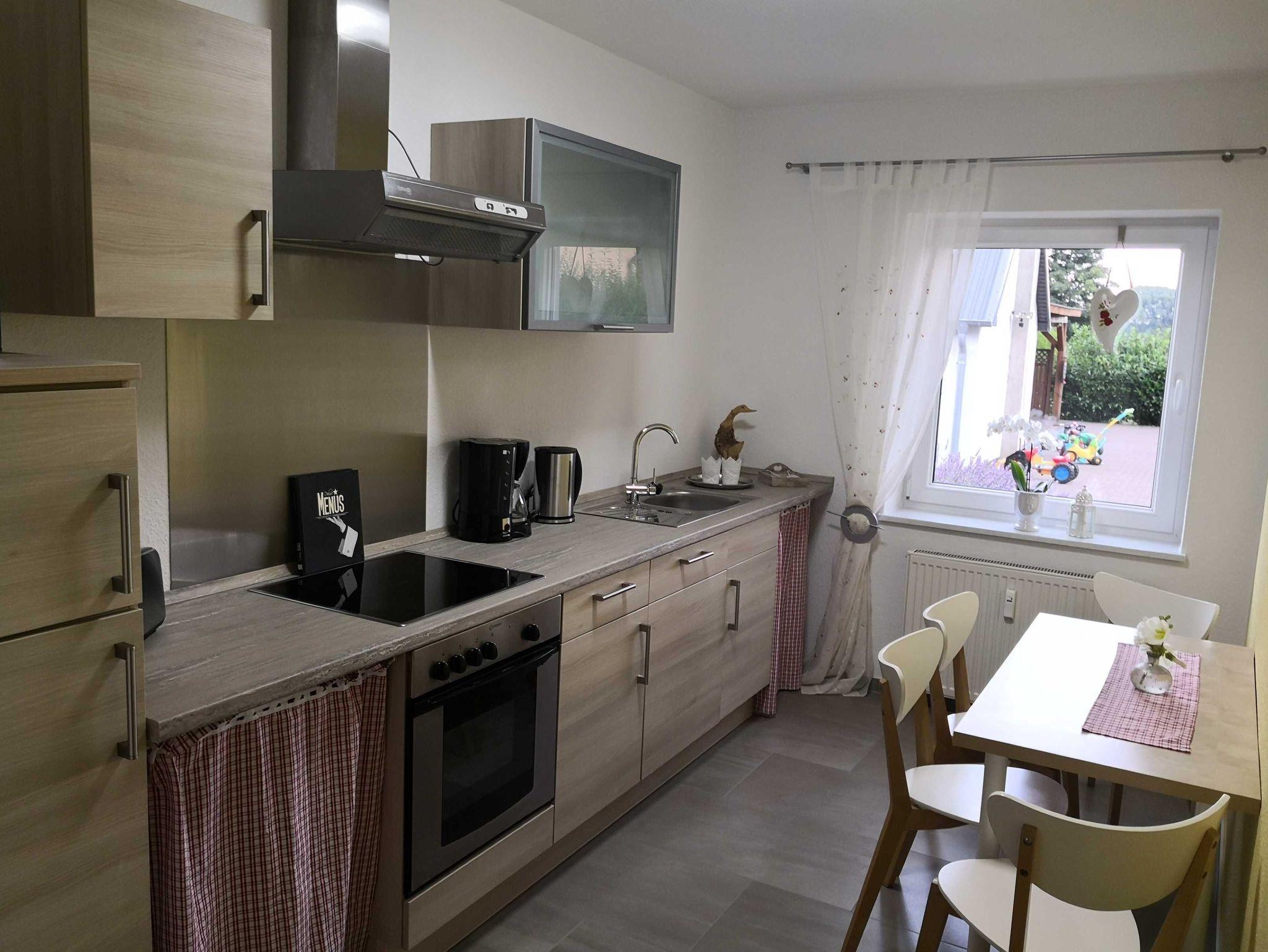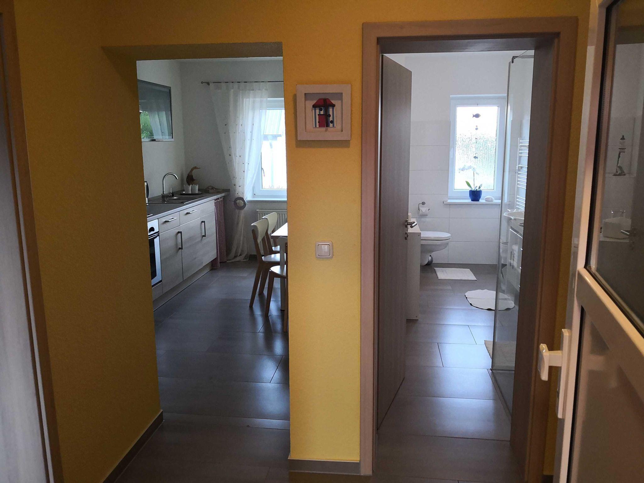 Die liebevoll eingerichtete Ferienwohnung ist 60m² groß und besteht aus 2 Räumen. Im Schlafzimmer steht ein Doppelbett, welches auf Wunsch auch auseinander geschoben werden kann. Im Wohnzimmer gibt es eine Aufbettungsmöglichkeit für 1 weitere Person, Kinder bis 3 Jahre können kostenfrei im Babyreisebett unterkommen. Dieses müssten Sie selber mitbringen. Hochstuhl und Bettwäsche sind ebenfalls vorhanden. Die Ferienwohnung ist eine Nichtraucherwohnung, es kann aber auf dem Hof geraucht werden. Der Hof bietet eine Grillecke und eine Spielwiese.