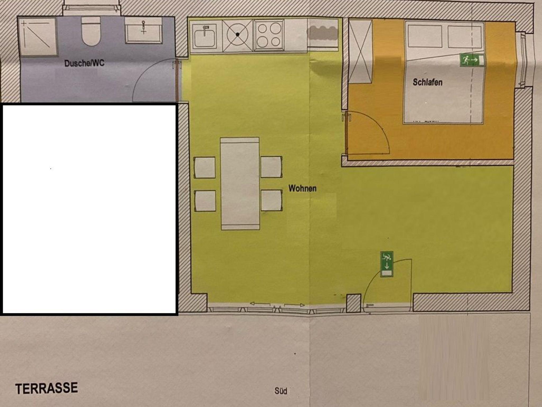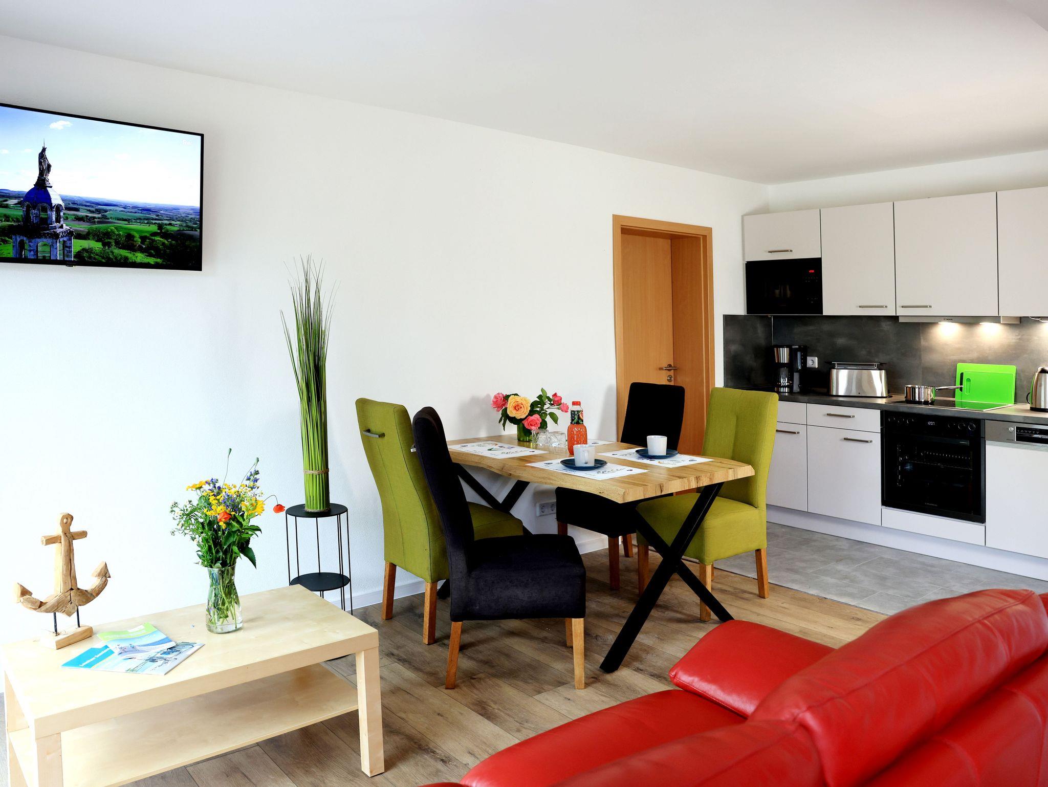 Die Ferienwohnung hat einen Wohn-/Essbereich und ein separates Bad. Im Schlafzimmer schlafen Sie in einem bequemen Doppelbett (160 x 200 cm). Das Aufstellen eines Kinderreisebettes ist möglich.