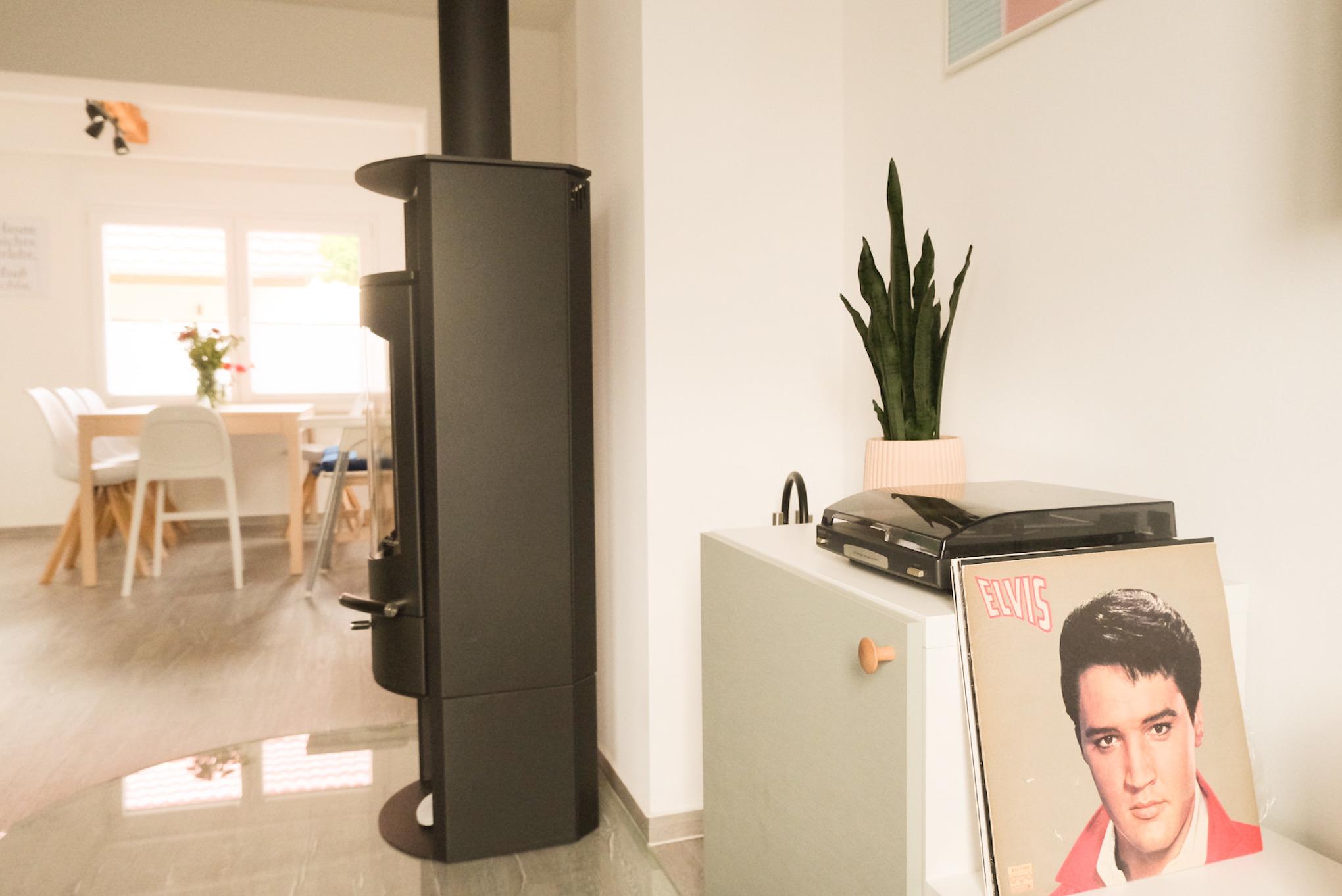 Die Ferienwohnung für bis zu 6 Personen (ca. 92m2) besteht aus zwei Schlafzimmern, einer großen Wohnküche, einem barrierefrei eingerichteten Badezimmer sowie einem Gäste-WC. Die Wohnung verfügt über einen großzügigen Essbereich und eine gemütliche Leseecke sowie Spielecke. Der Wohnbereich kann zusätzlich durch einen Kaminofen beheizt werden.