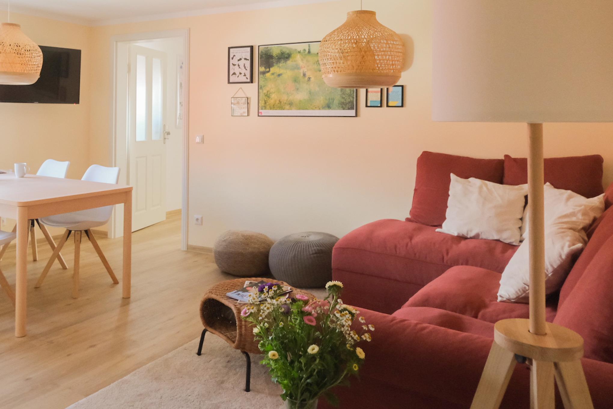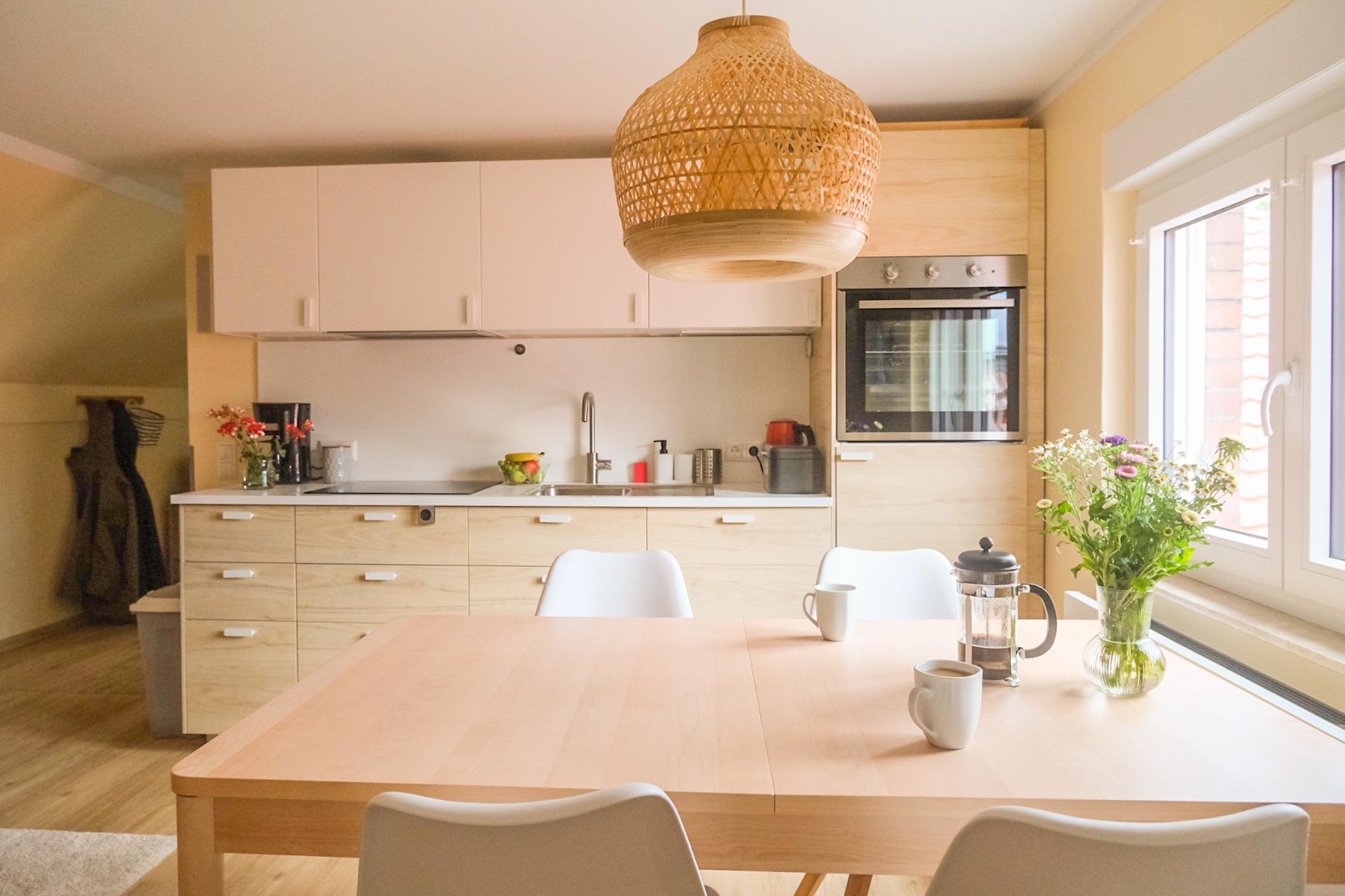 Die Ferienwohnung Liese bietet Platz für bis zu 6 Personen und liegt im oberen Teil des Hauses. Sie verfügt über eine modern eingerichtete Wohnküche mit großem Esstisch, eine gemütliche Leseecke, einem Bad mit Dusche und zwei Schlafzimmern auf insgesamt 63qm.