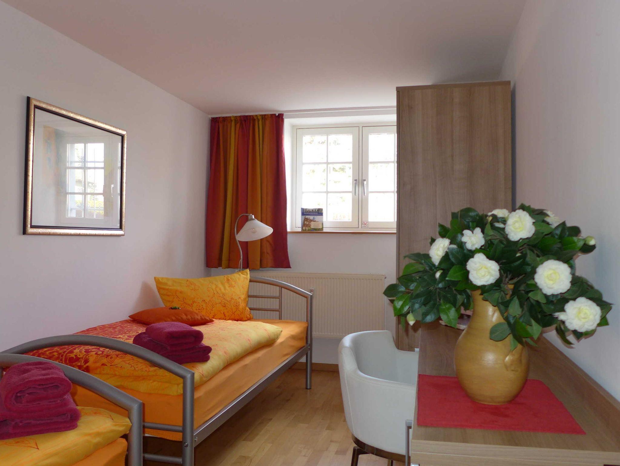 Hier nutzen Sie 2 Ferienwohnungen nebeneinander mit jeweils einem gemütlichen Wohn/ Schlafraum, ein weiterer Schlafraum befindet sich separat neben den Ferienwohnungen für die 5. und 6. Person, Küche mit großem Esstisch, Flur und 2 Bädern.