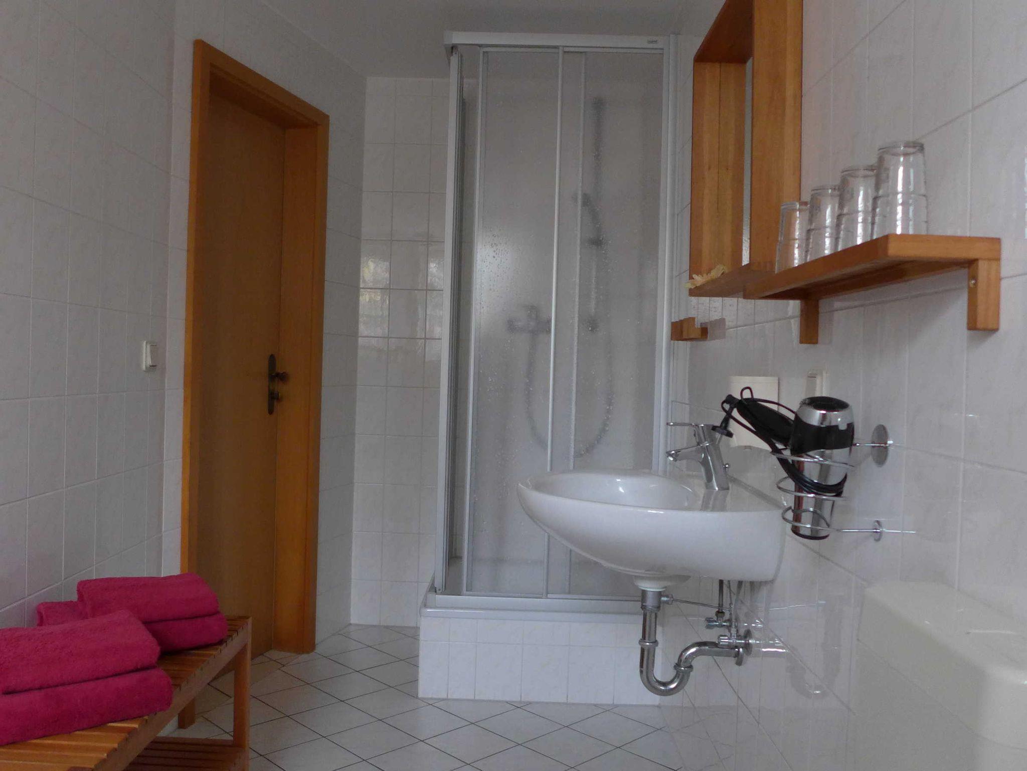 Unsere Wohnungen Käthe ist bis maximal 6 Personen und 2 Kleinkindern - Babys buchbar, ausgestattet mit einem geräumigen Duschbad, Küche incl. Geschirrspüler, Kühlschrank und Induktionsherd.